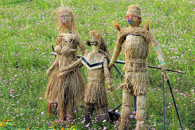 ,遊客還能探訪花田旁五花八門的裝置藝術,或是穿梭於稻田迷宮間
