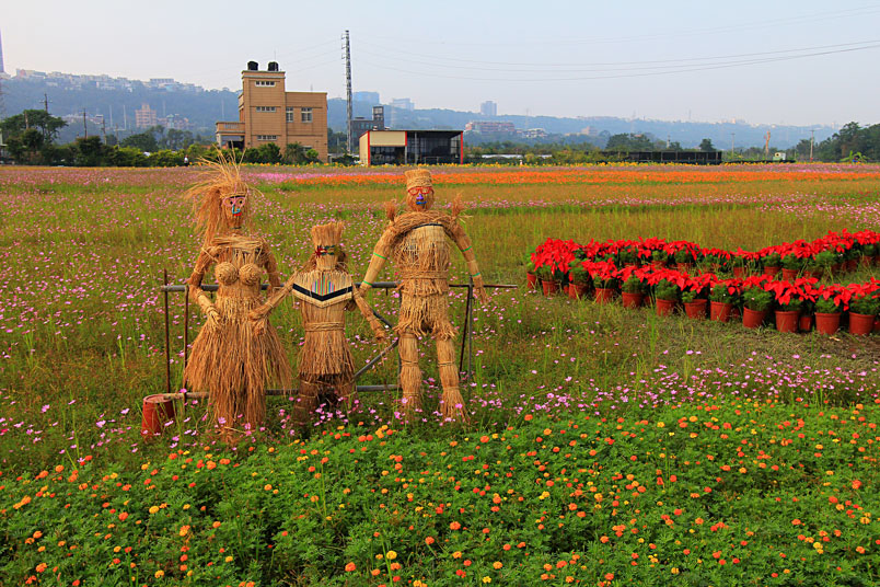 大溪的花海,集中在李騰芳古厝周邊,從武嶺橋旁甫一轉進月眉里,