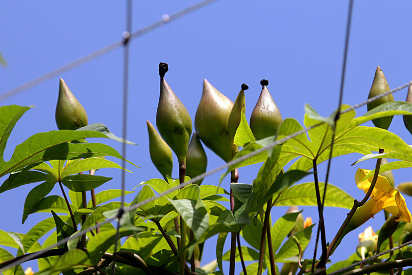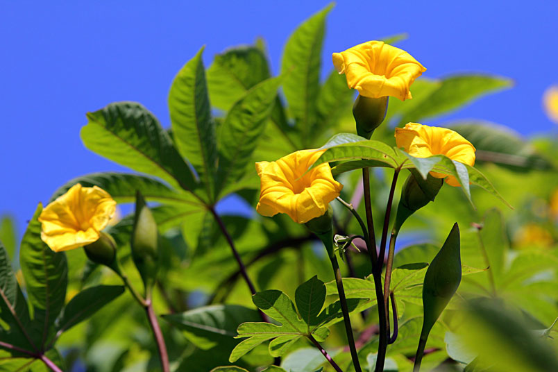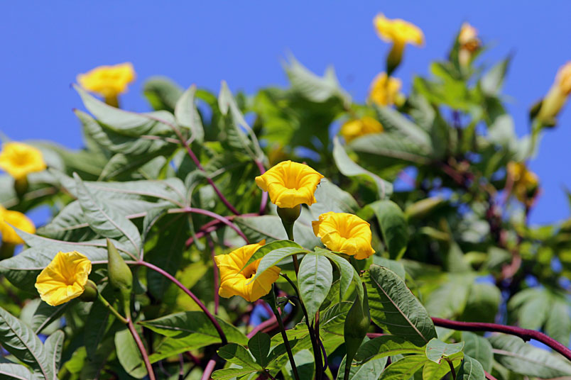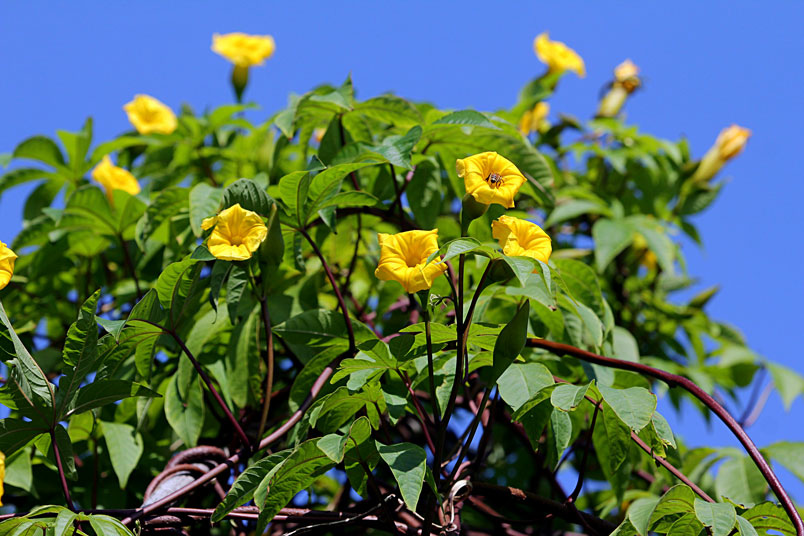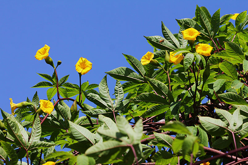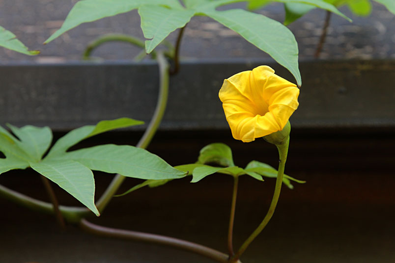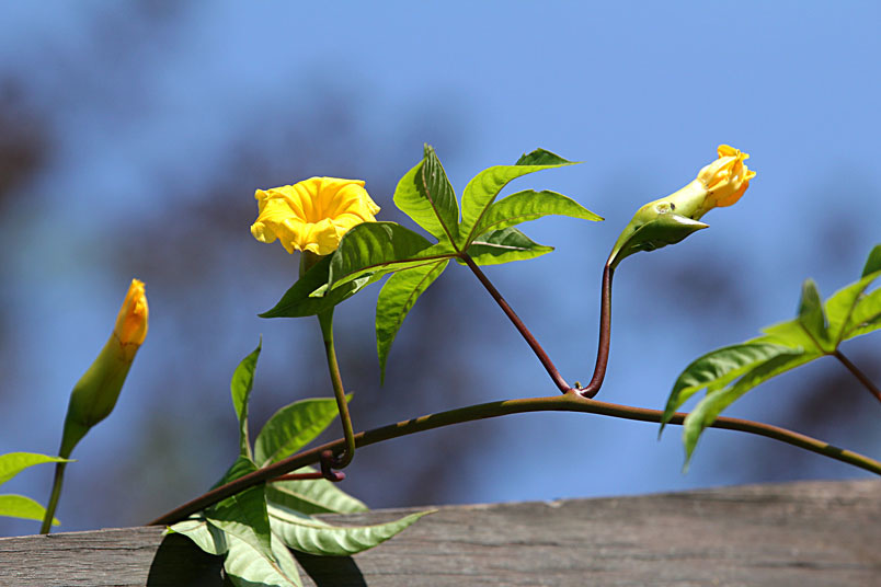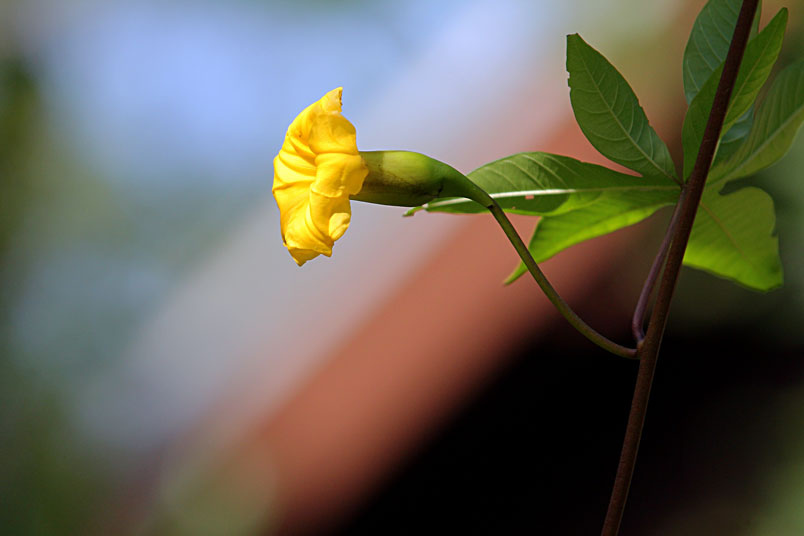 花冠長 5~6 公分,黃色,漏斗形,狀如喇叭,早上開花,下午就