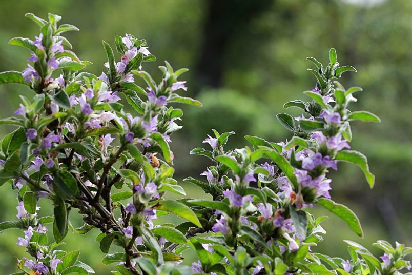 莖方形,木質化,有稜溝,全株具白色粗毛。
