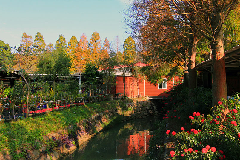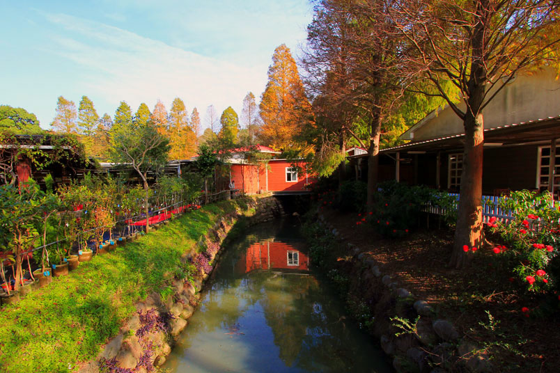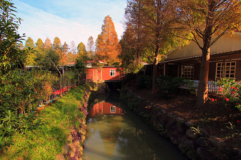 渠流經;走上橫跨水渠的木棧橋,還真覺得走入了歐洲鄉間似的