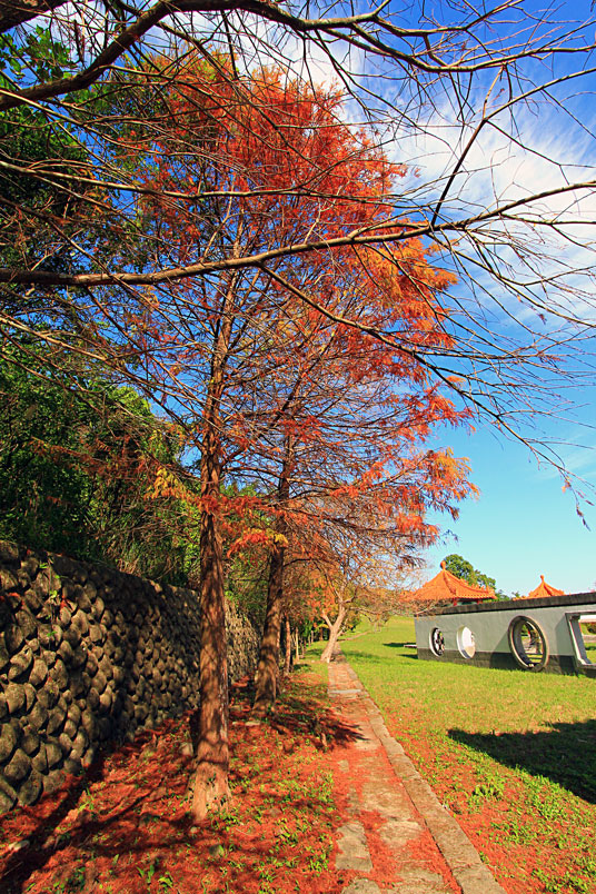 除了溪州公園,石門大草原也有幾棵已經紅了的落羽松。