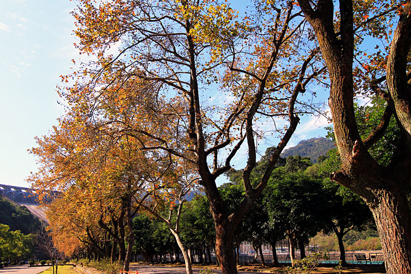 等等都是石門水庫的特色,其中以楓林步道最具風情,楓林步道兩