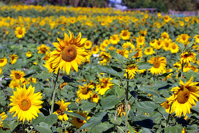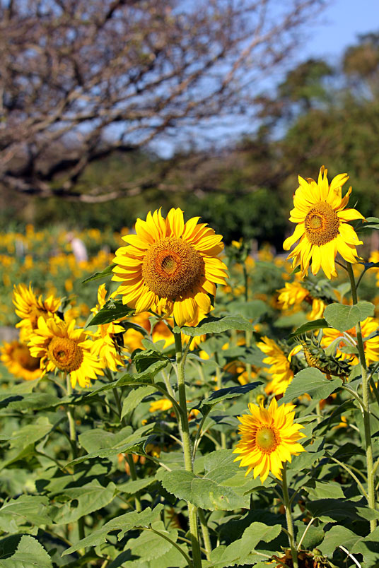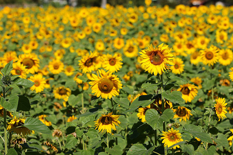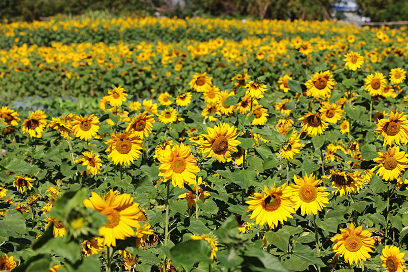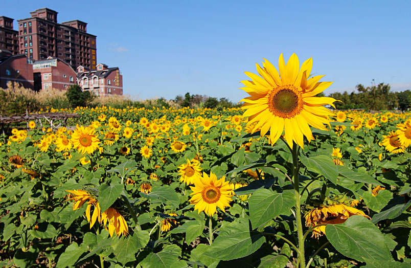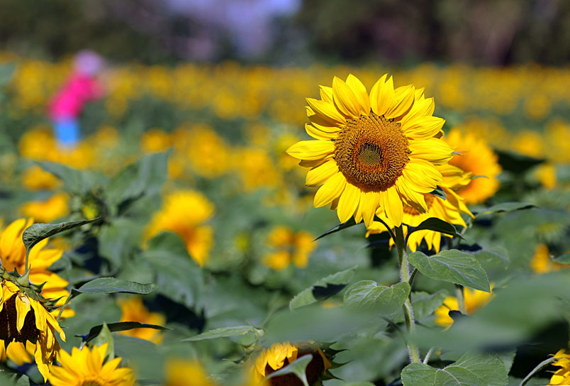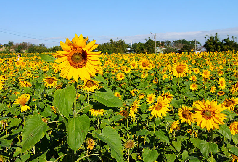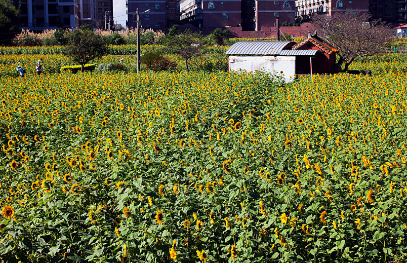 這片向日葵幾乎長得比人還高,形成約一.六公頃的向日葵「花