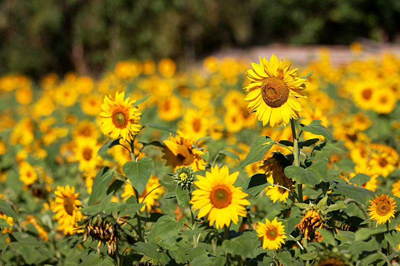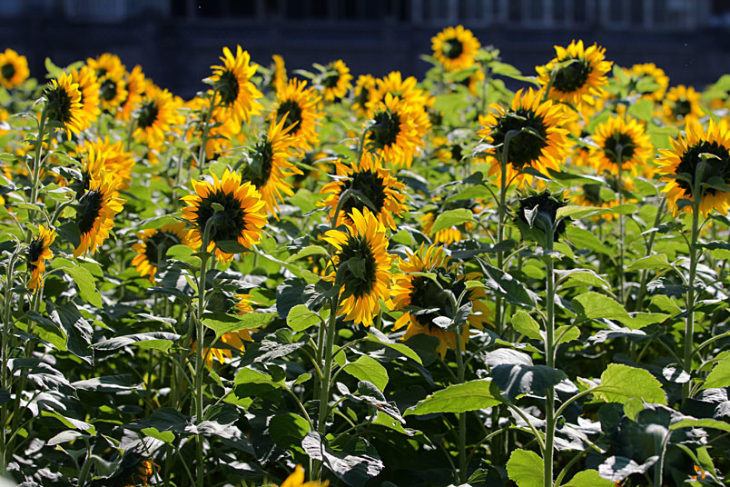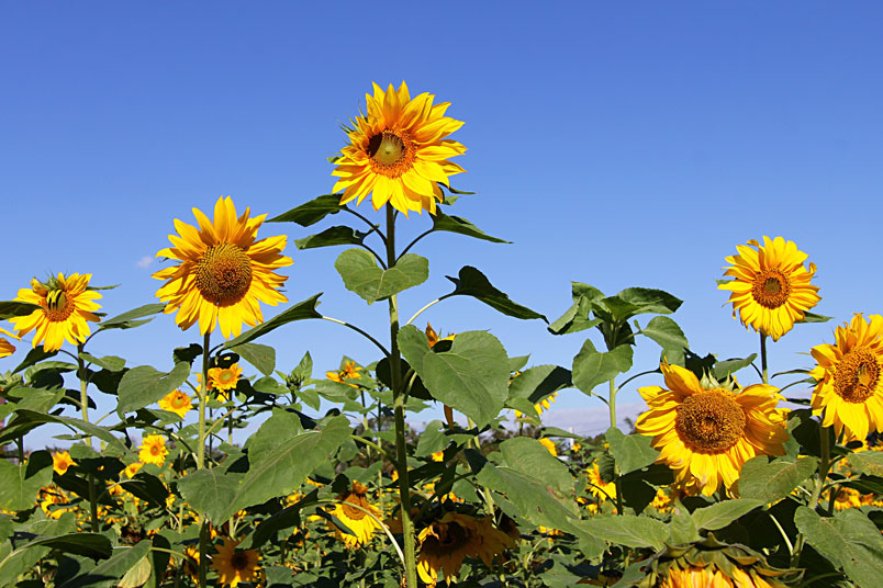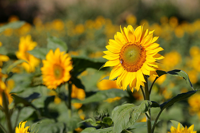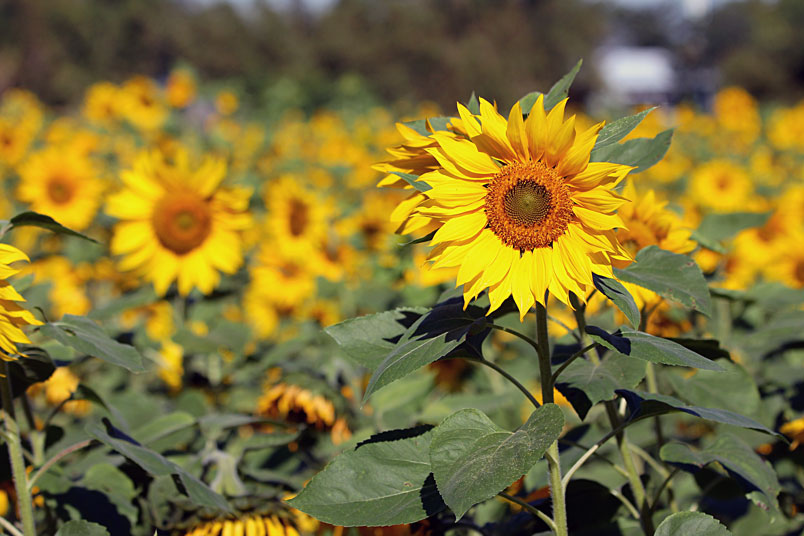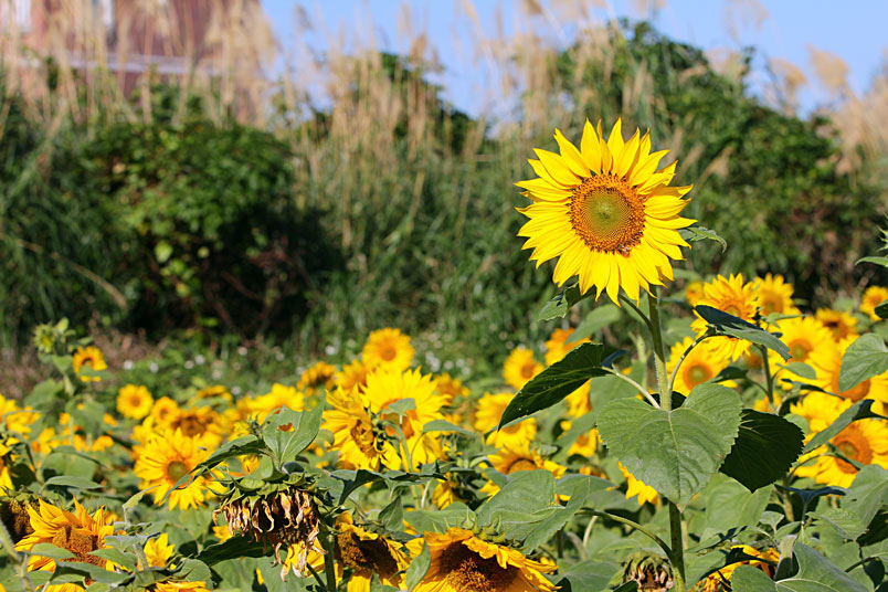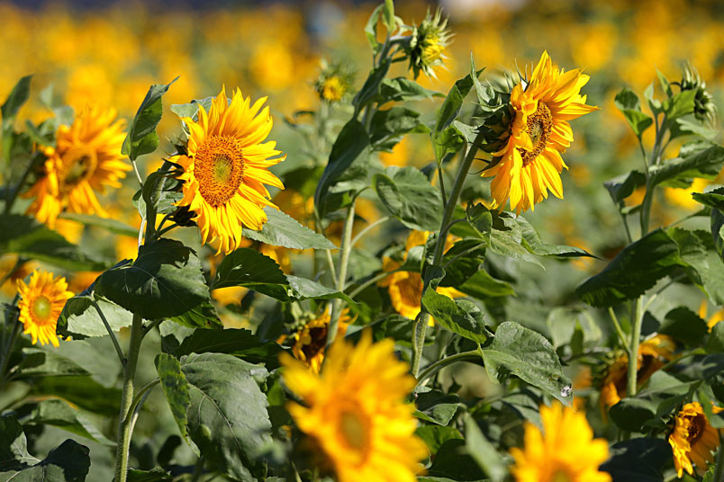 這片向日葵幾乎長得比人還高,形成約一.六公頃的向日葵「花