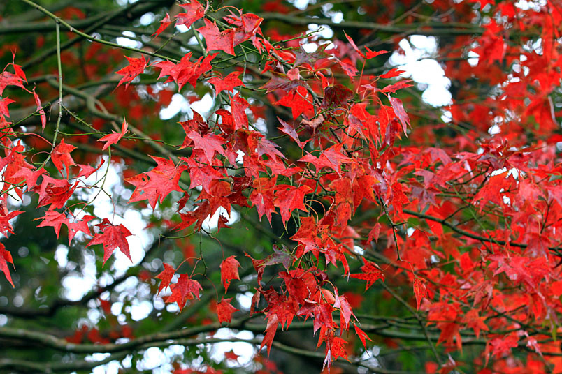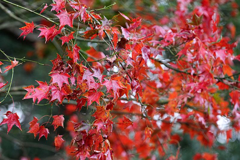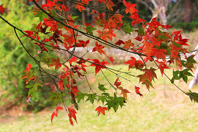 花少不愁沒顏色,火紅的楓葉把冬日妝點得繽紛浪漫,地上地