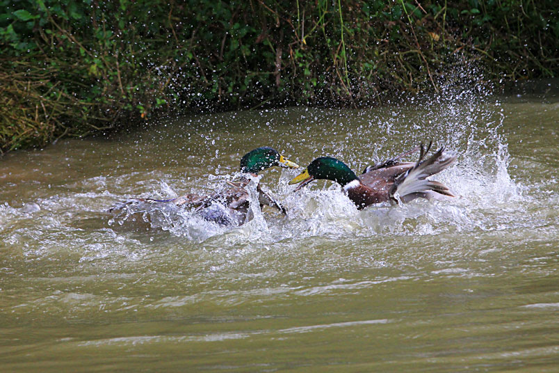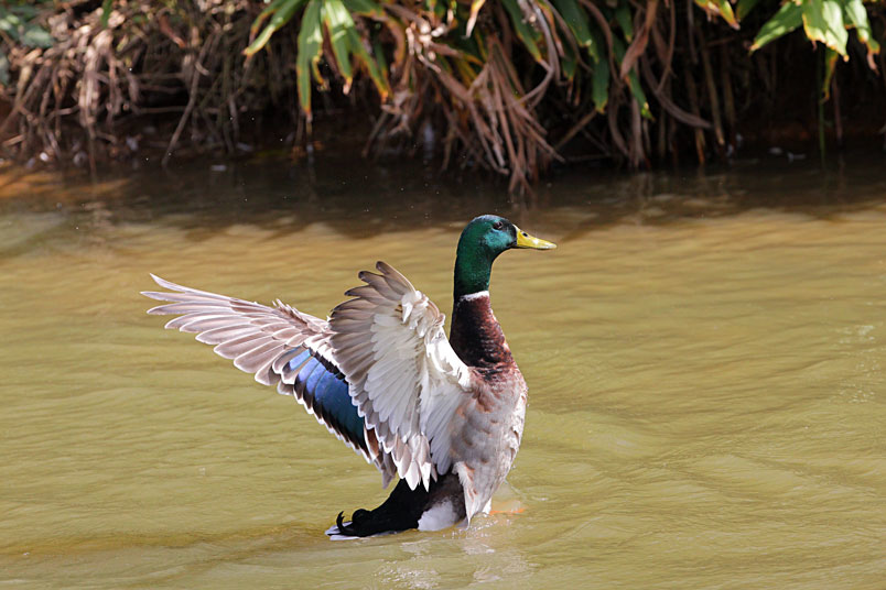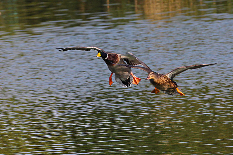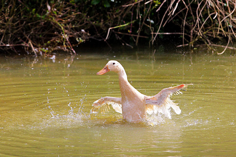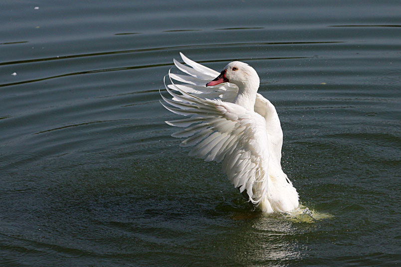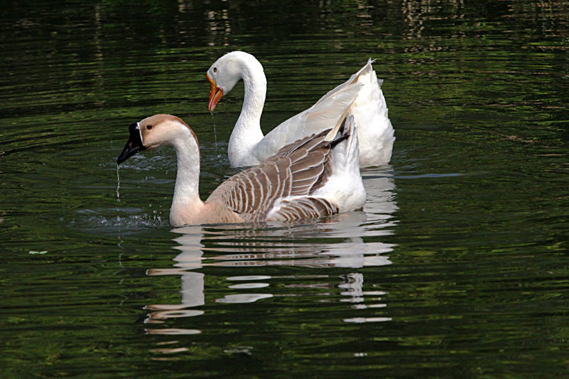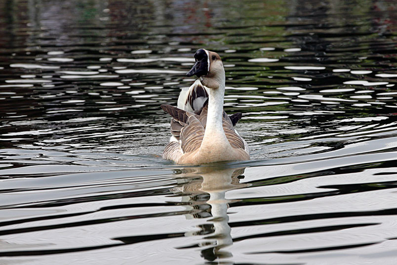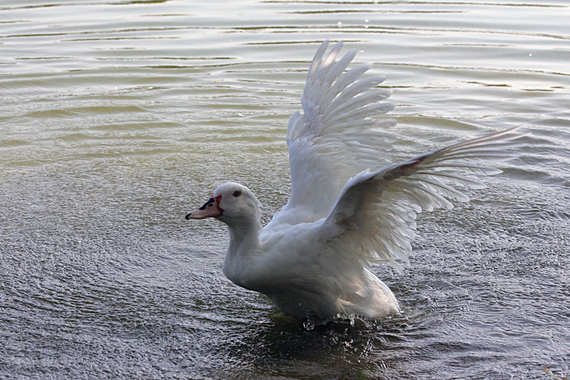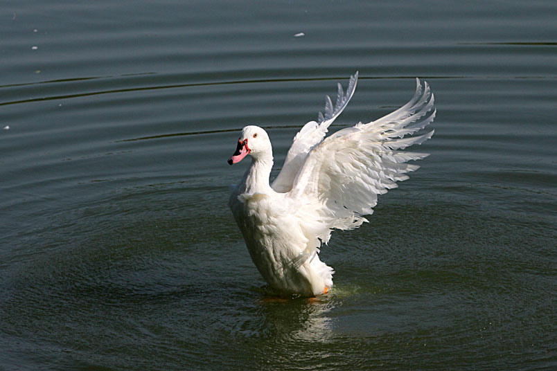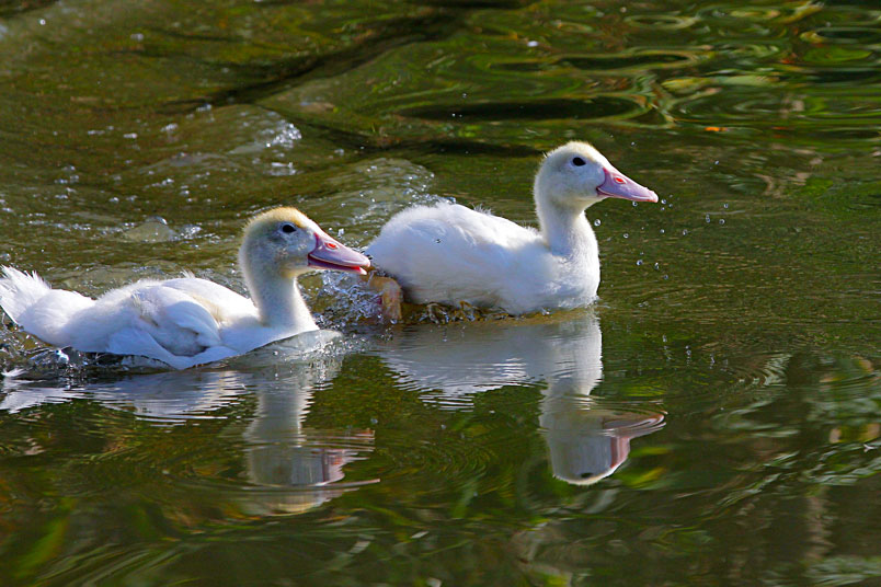 池塘邊,有三五成群的鴨子在冰冷的水中戲游,時而把頭潛入水