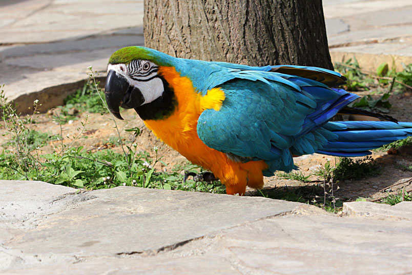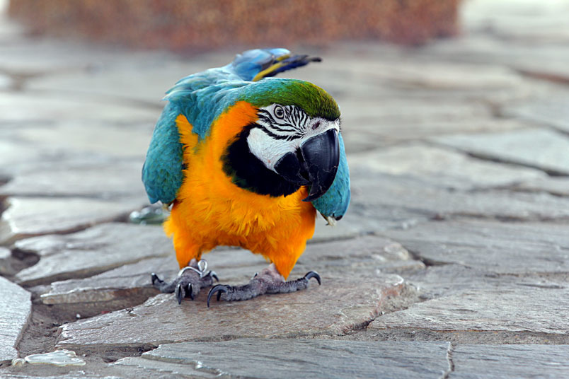 藍黃金剛鸚鵡為一夫一妻制,雌、雄從外觀上難分辨。金剛鸚鵡