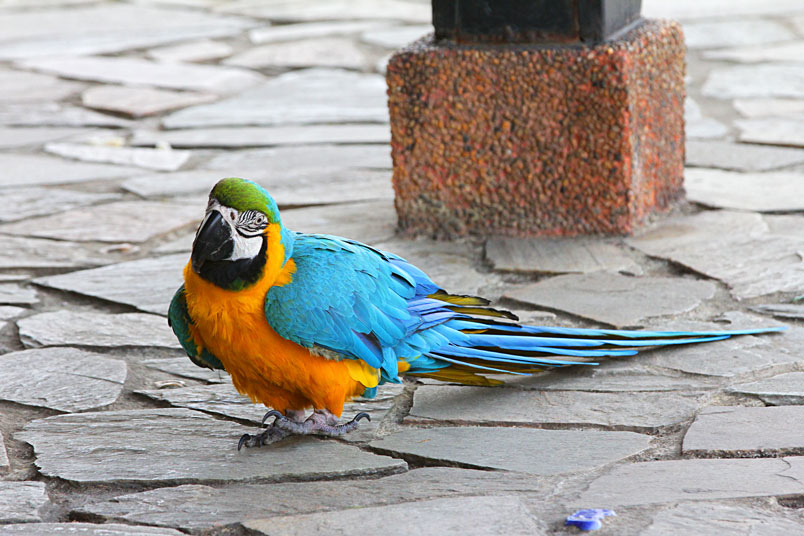 大型的金剛鸚鵡特別受歡迎且常見,個性溫和 常可於各地鳥店、
