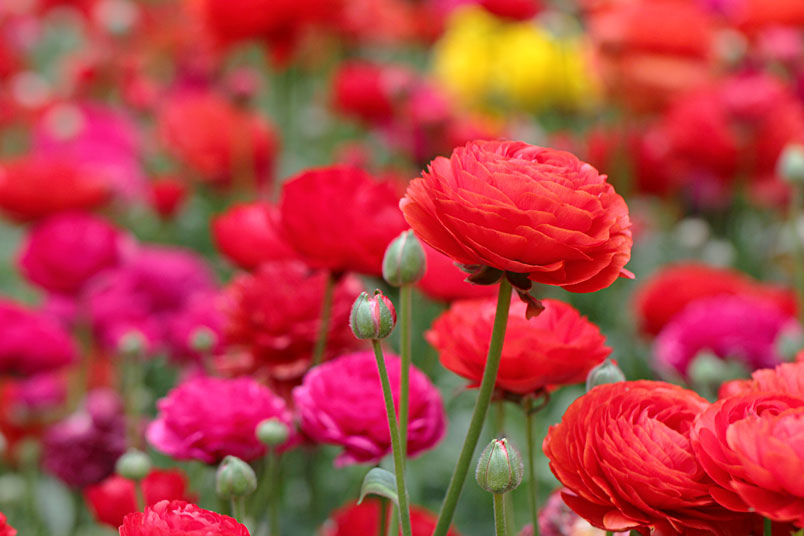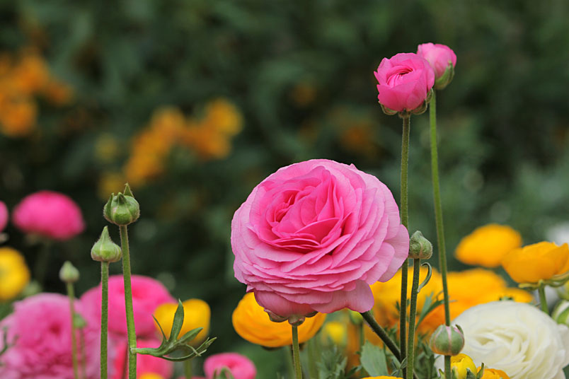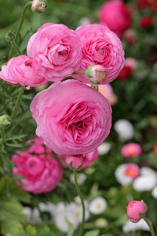 有紅、白、橘、黃、粉紅、桃紅等單色品種,與花瓣鑲邊或色