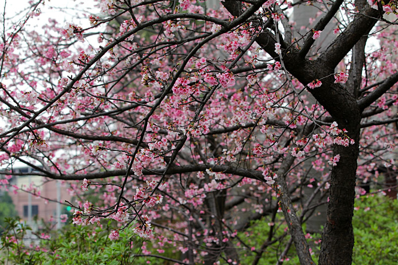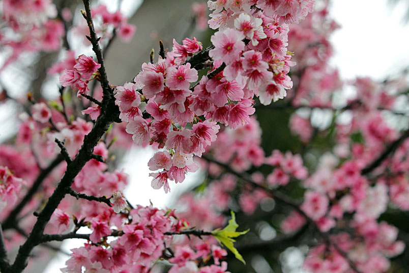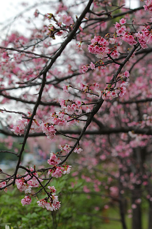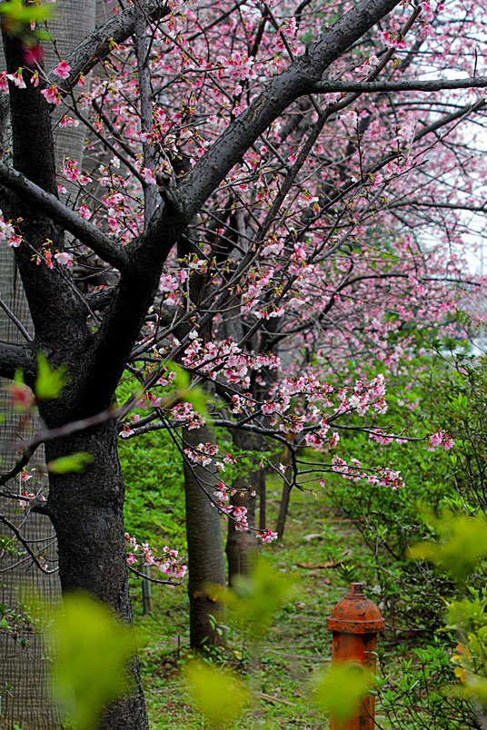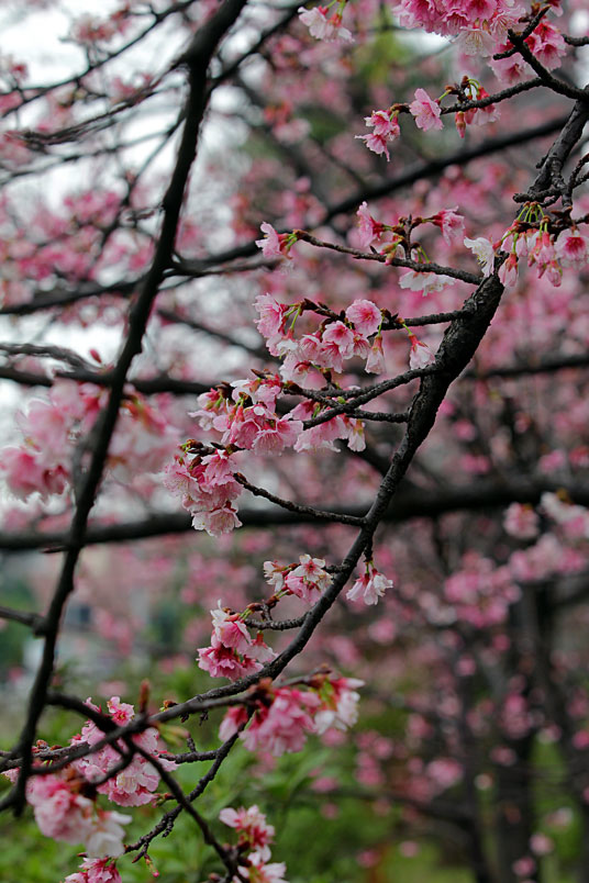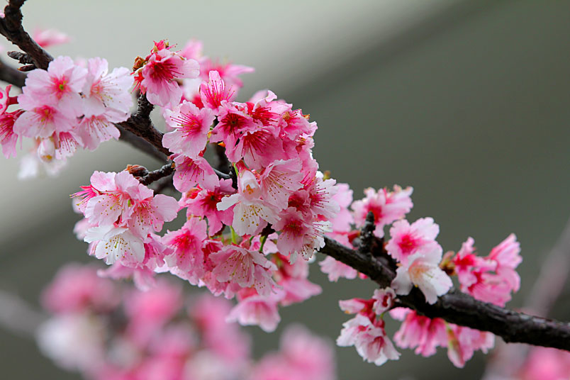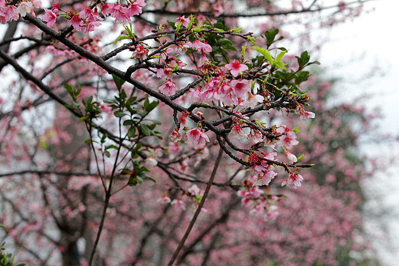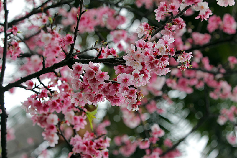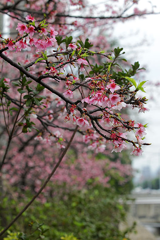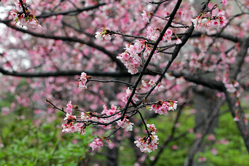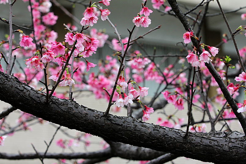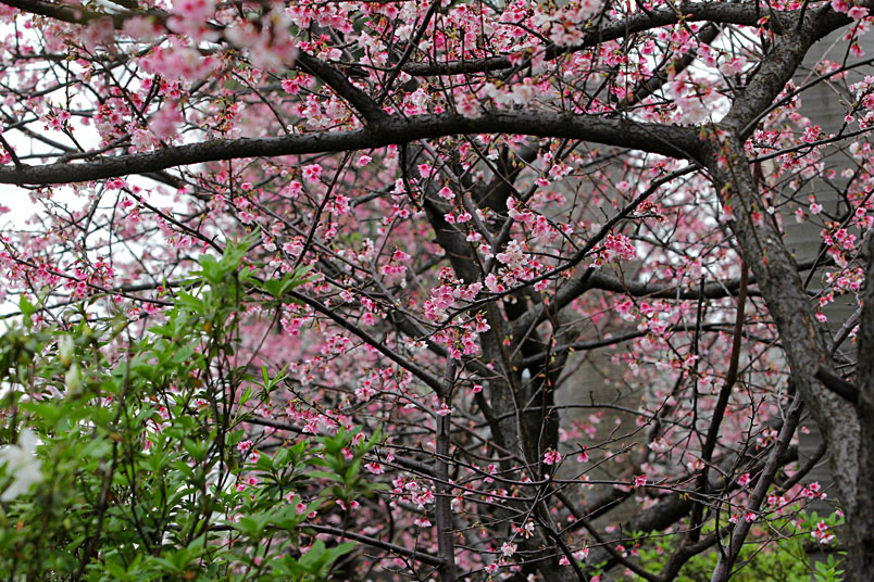 今年的花況沒有去年好,但一眼望去,醉人的粉紅寒櫻越過牆