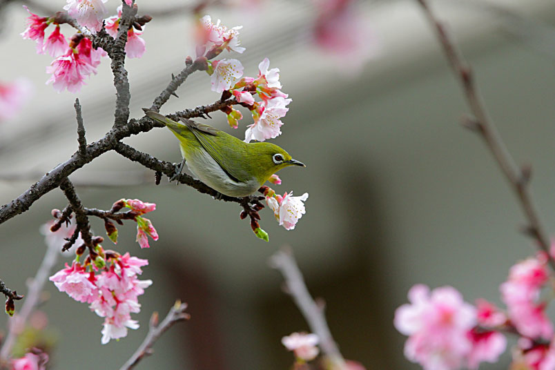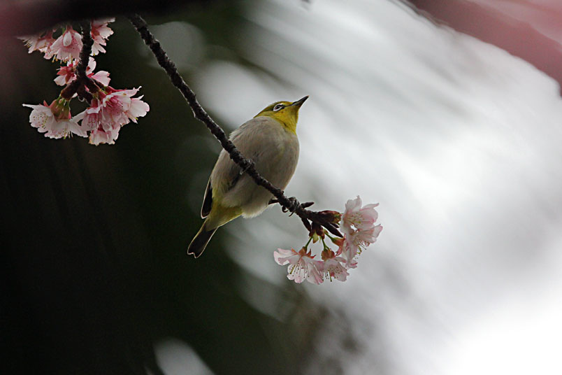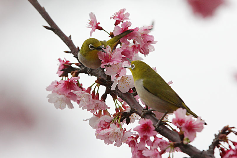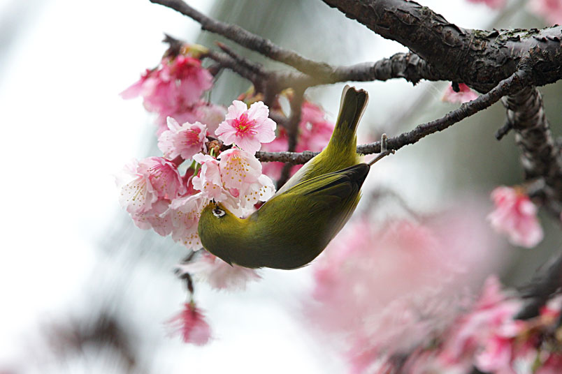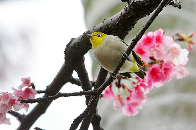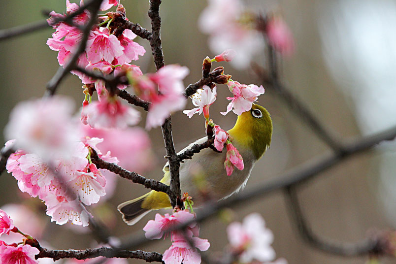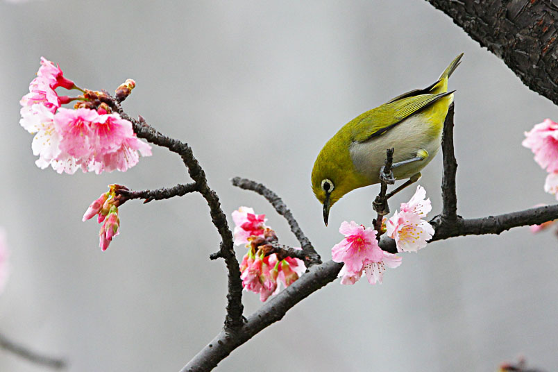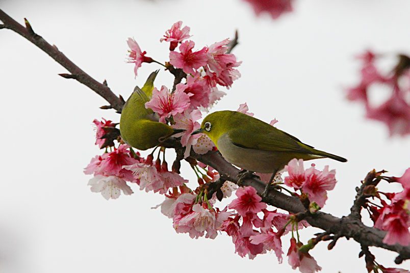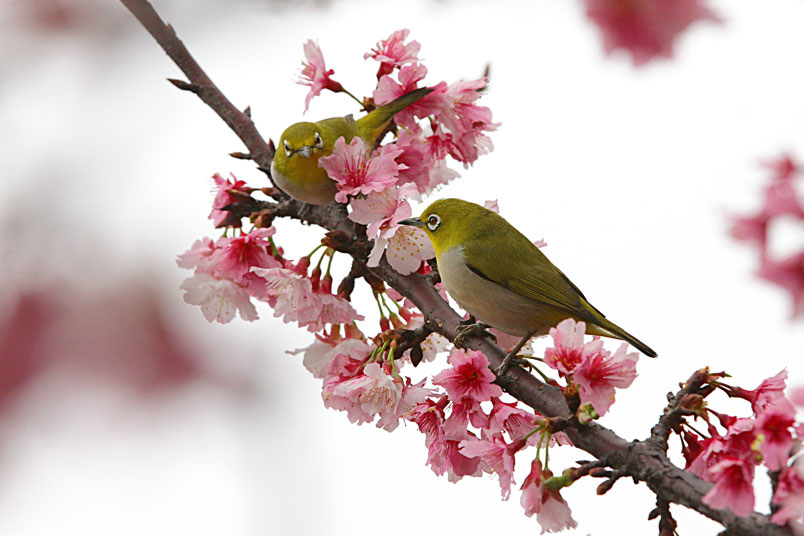 嘰嘰喳喳的綠繡眼成群在樹上嬉戲,彷彿高唱春光美。
