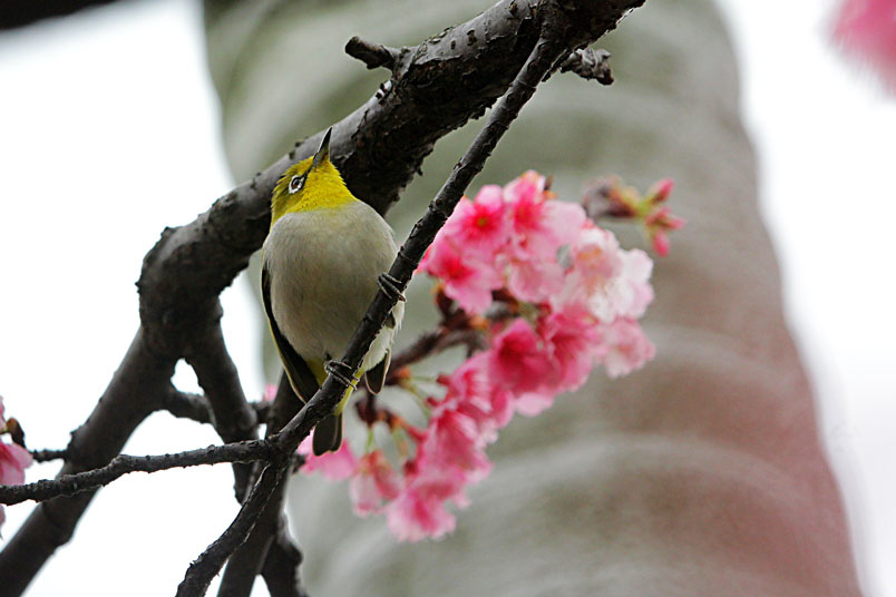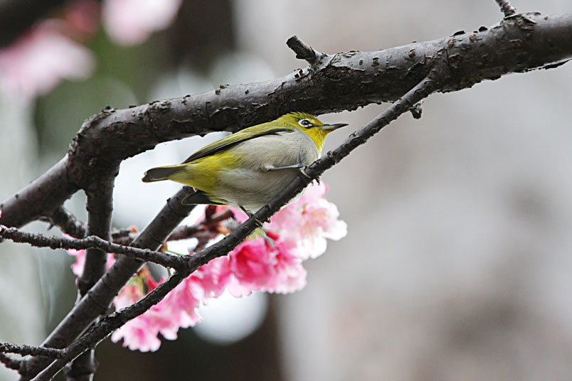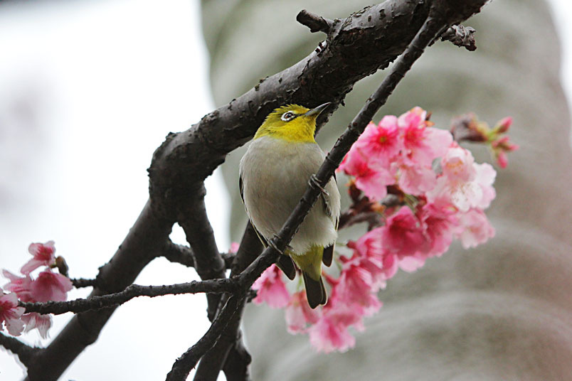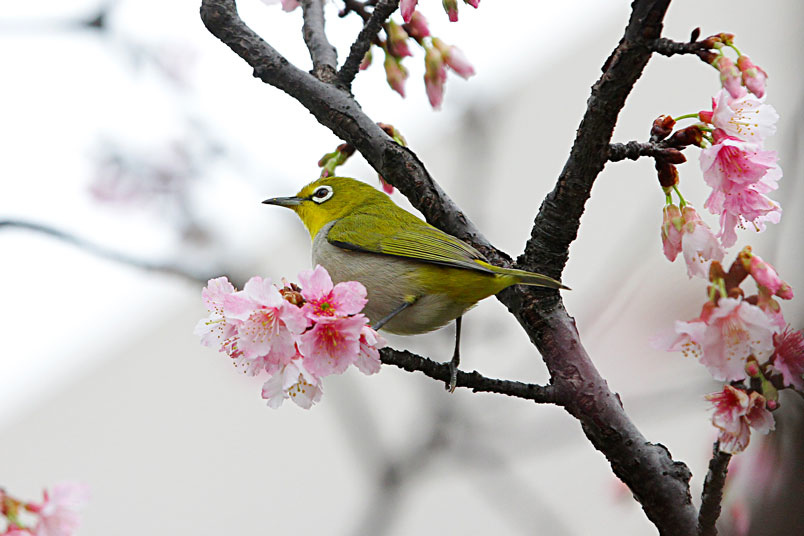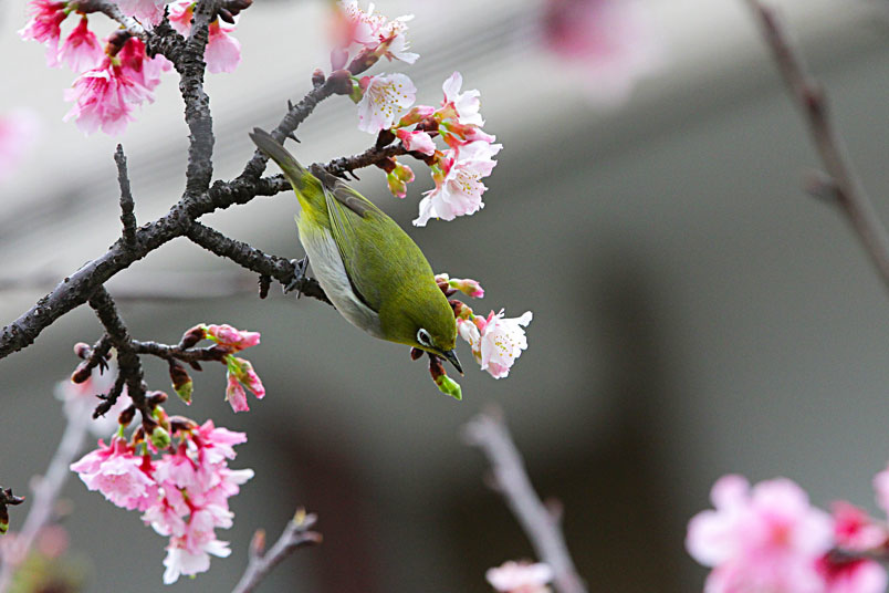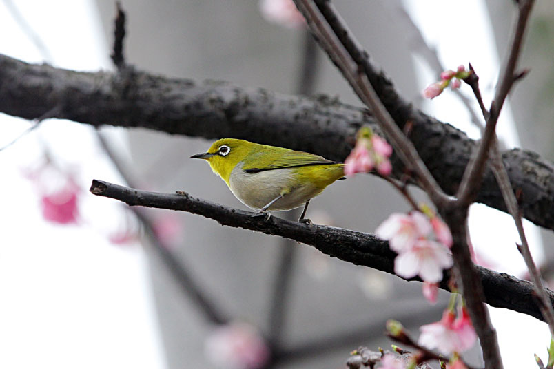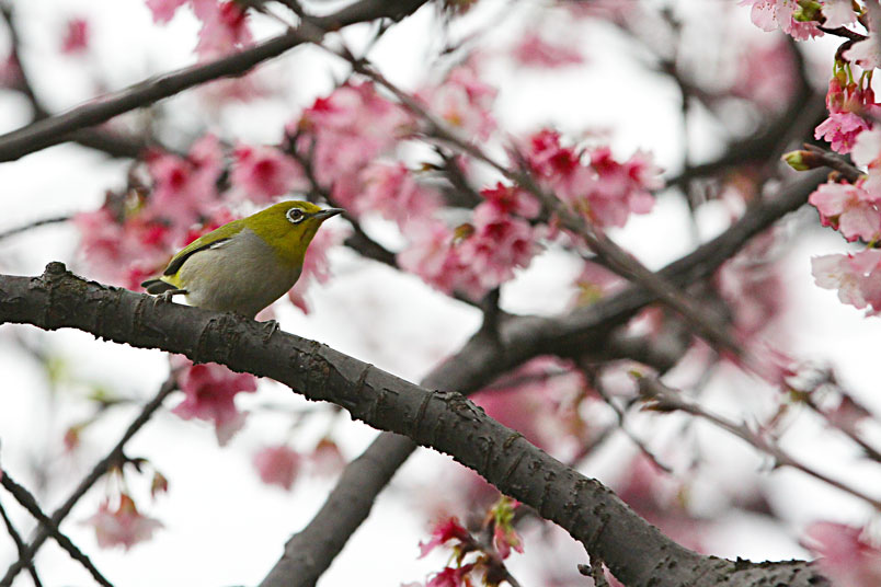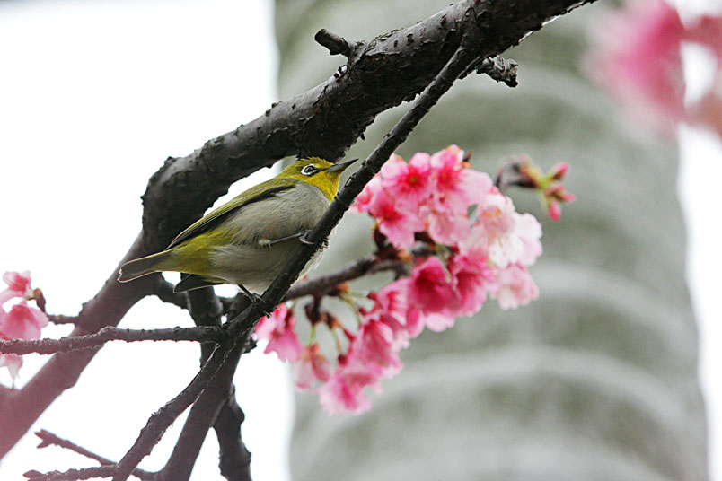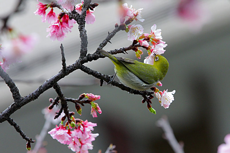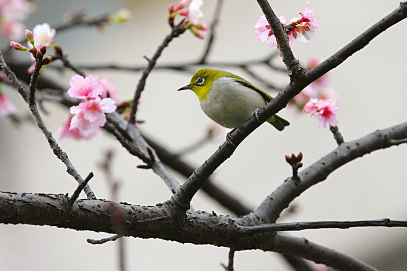 嘰嘰喳喳的綠繡眼成群在樹上嬉戲,彷彿高唱春光美。