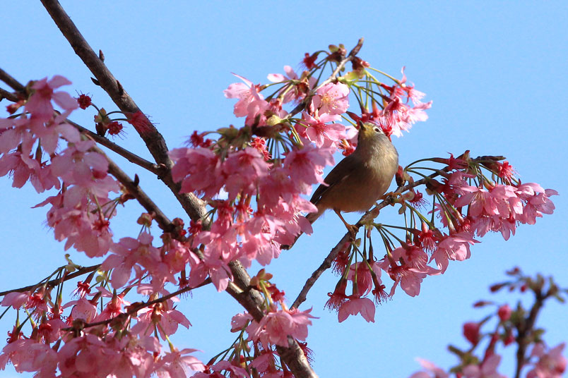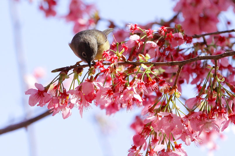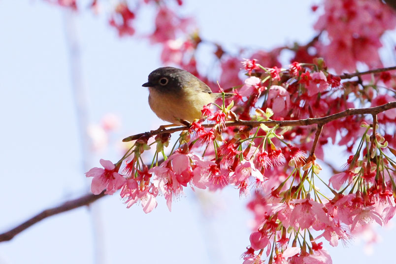 白眼環,背部灰褐色腹部則為黃橙色,嘴部黑褐色,腳部為黃褐