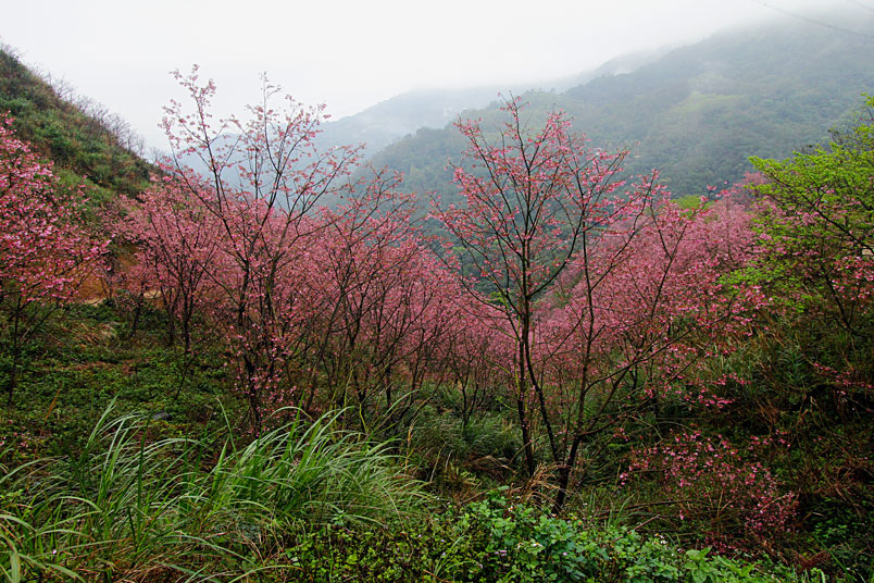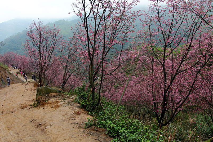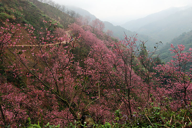 可惜天氣不好,不然粉嫩櫻花搭配藍天與青山,更像一幅美麗的圖