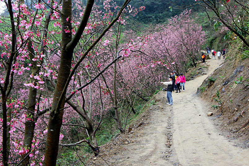 隨著時序變換,各個品種的櫻花接力盛開,可從一月份一直欣賞