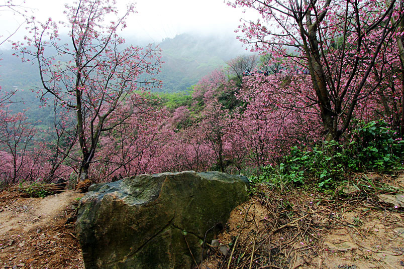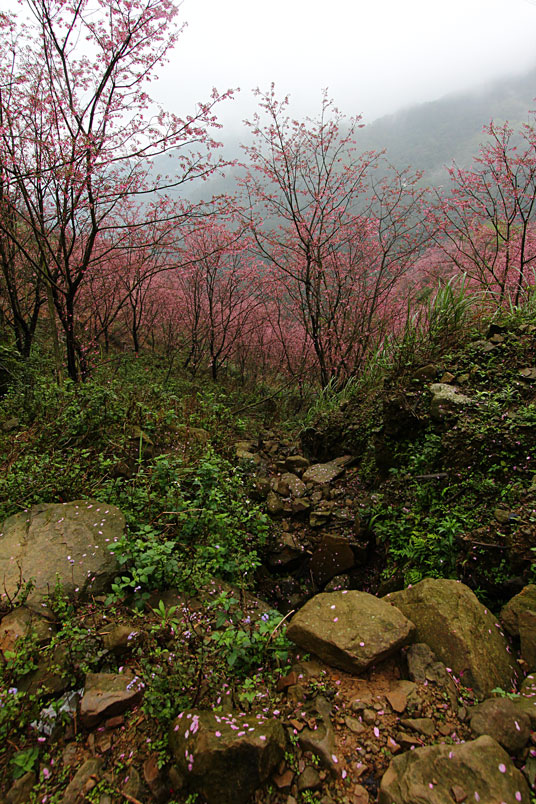 訪時機是雨後放晴日,滿山遍野的櫻花,背景是雲海,簡直美極