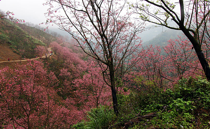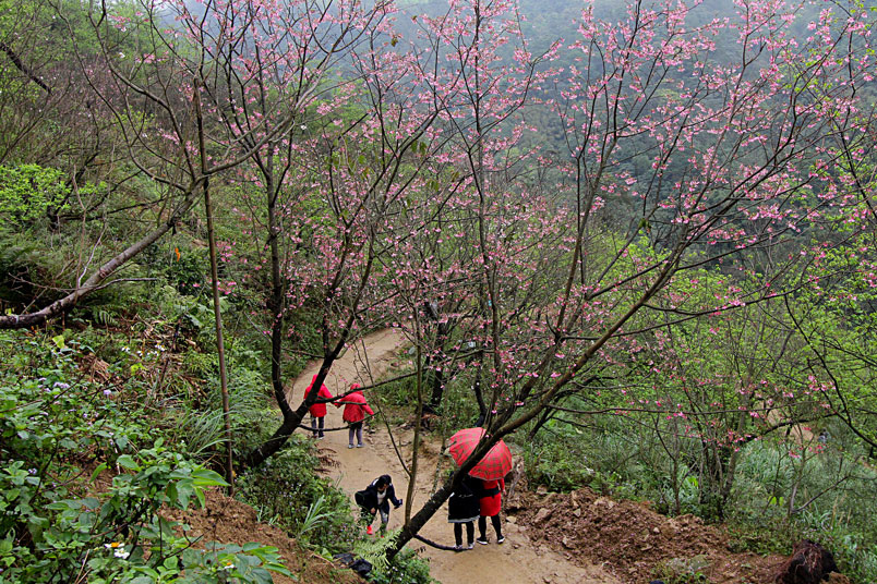 種植3萬多株櫻花,綿延的粉嫩花林如詩如畫,即使在雨中欣賞,
