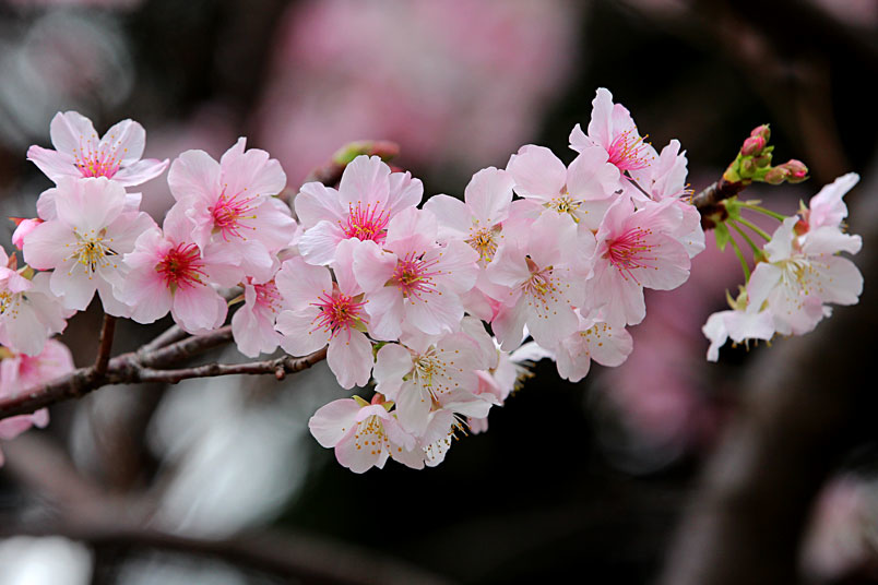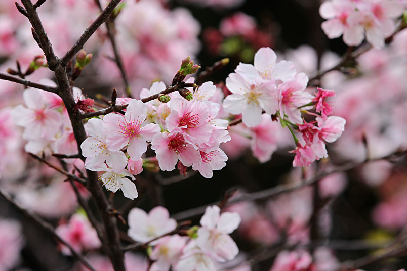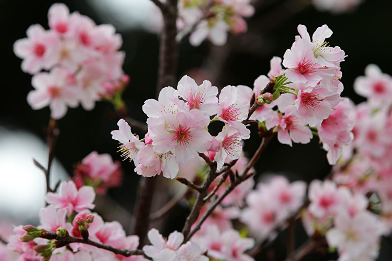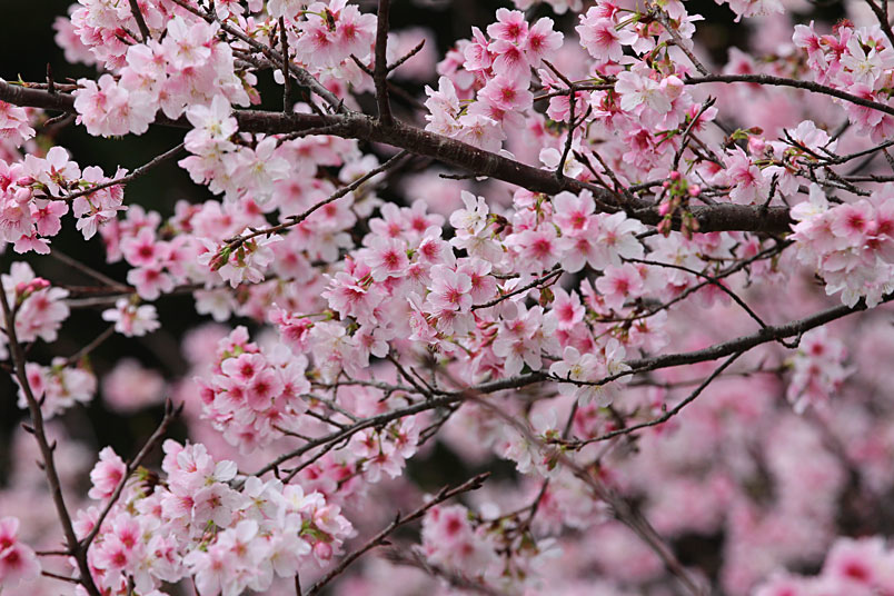 大漁櫻為大島櫻的實生變種,樹高呈傘狀樹姿,因花色呈鯛魚的顏色