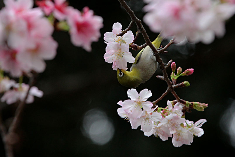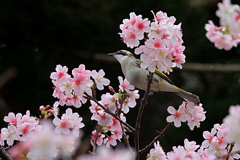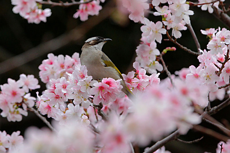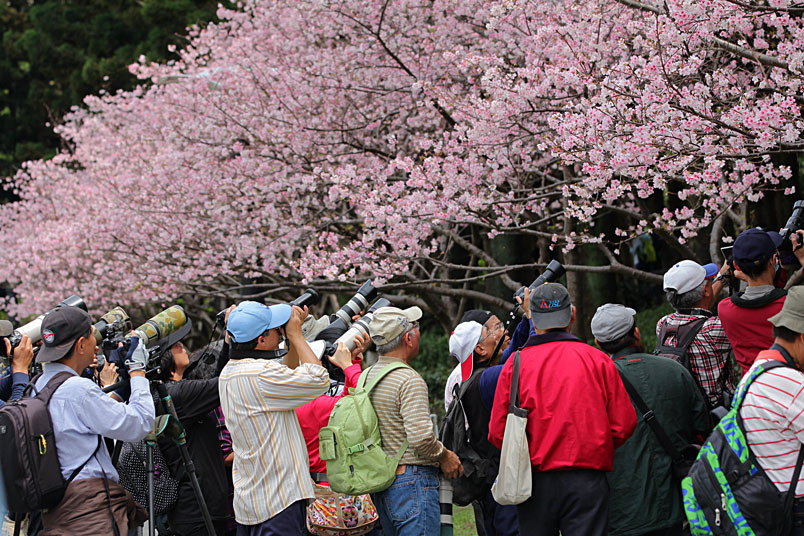 櫻怒放,吸引民眾扶老攜幼來賞花,當然還有為鳥兒來的攝友們。