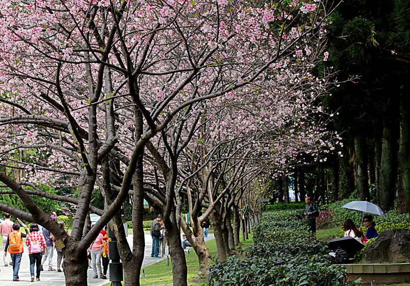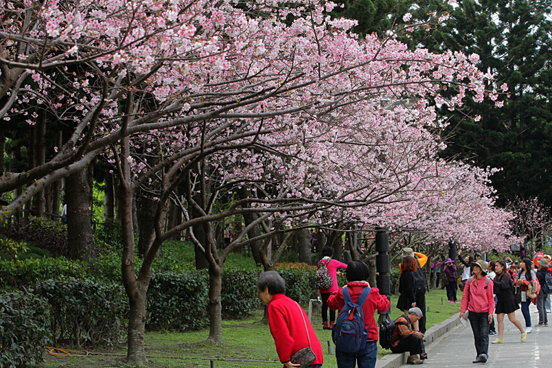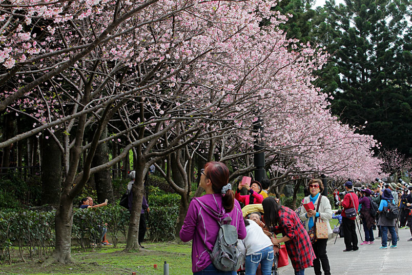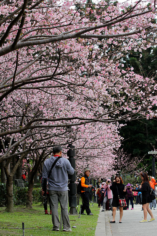 中正紀念堂是最便捷的賞櫻景點,種植於環堂道路後方的一整排大漁
