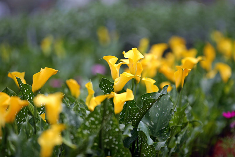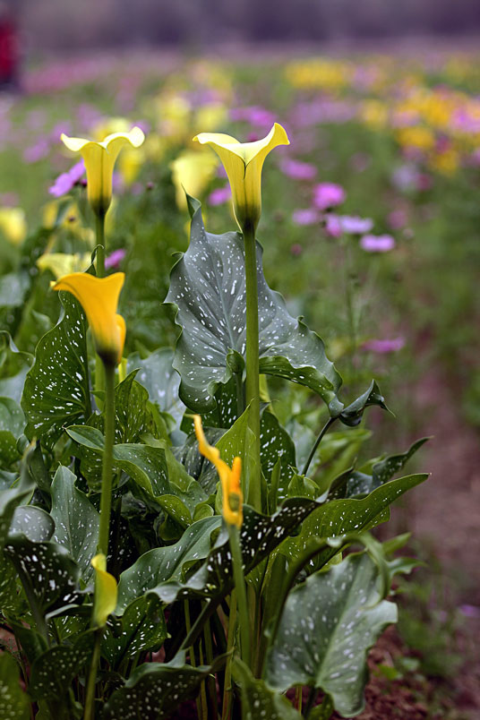 珍美稀。彩色海芋是球莖種植於旱田,花朵有各種顏色的品種,
