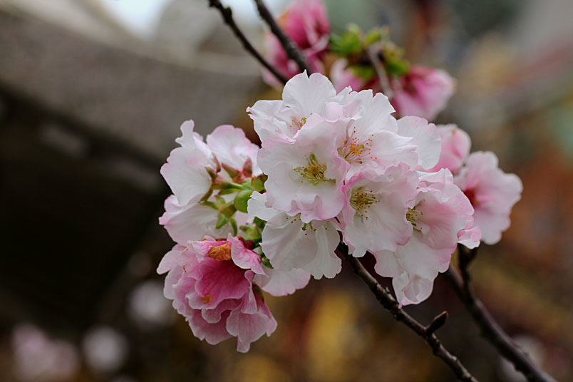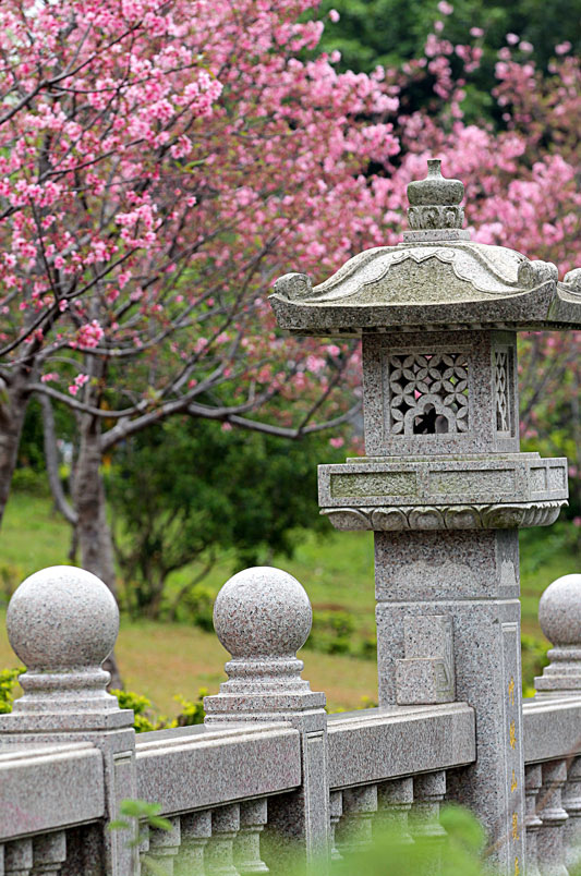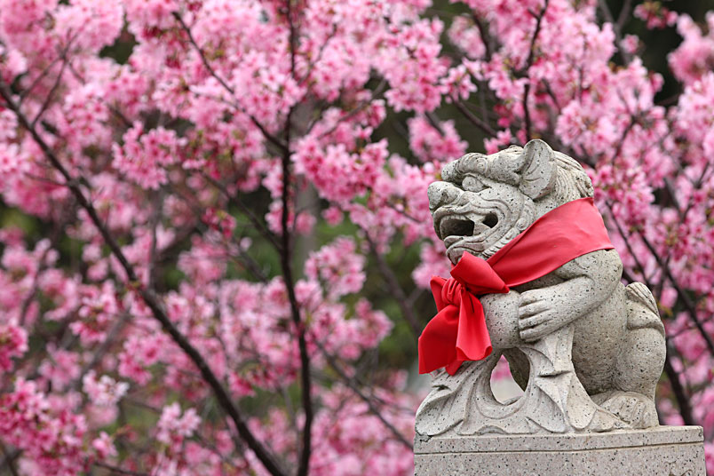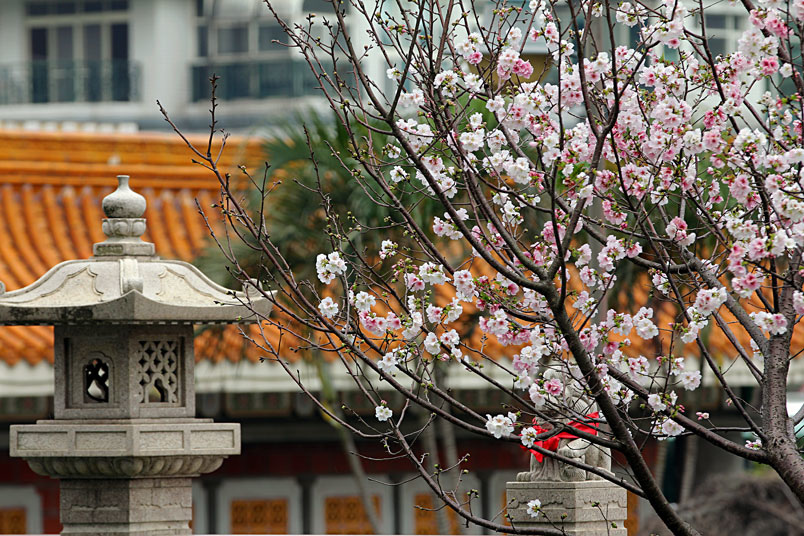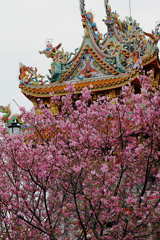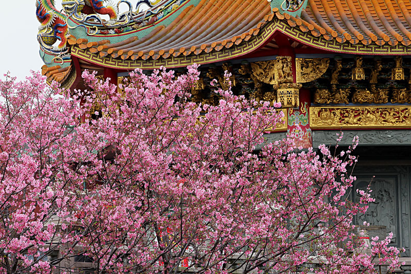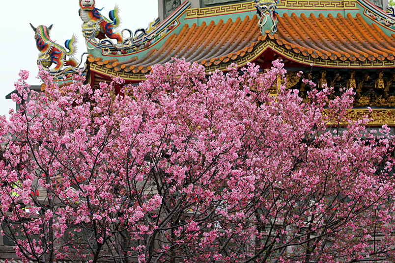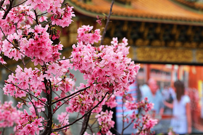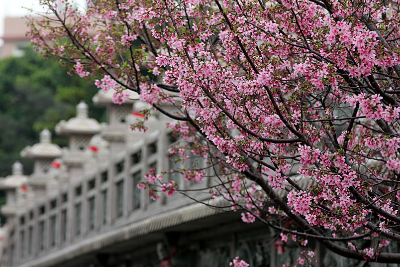 今年由於暖冬,所以櫻花花期延後,大家所熟知的淡水天元宮