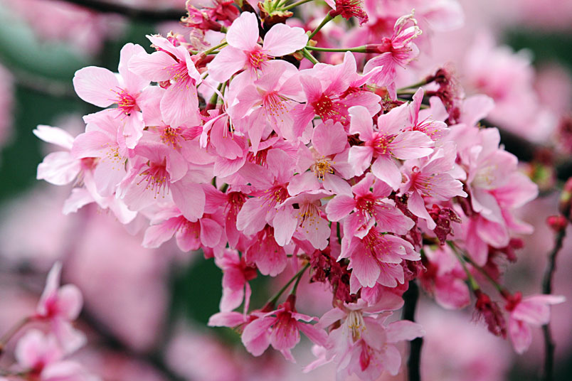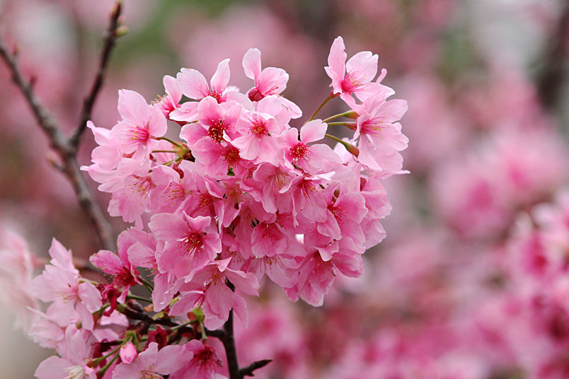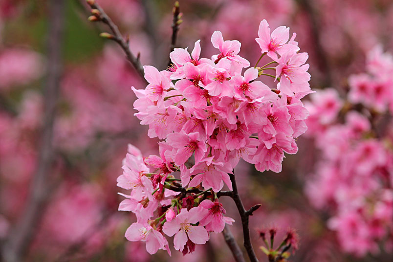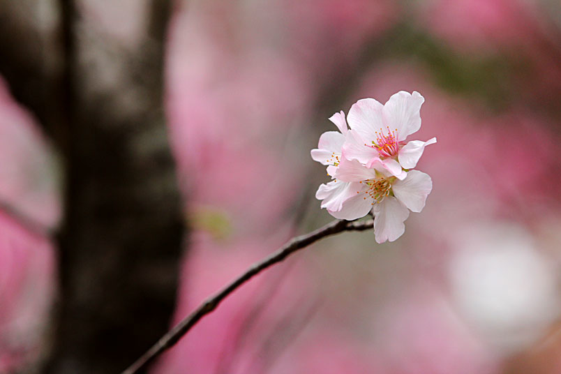 生,有雪白和粉紅兩種花色,花期為每年的3~4月,相當受一