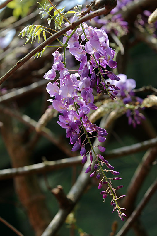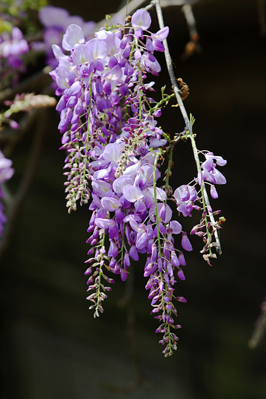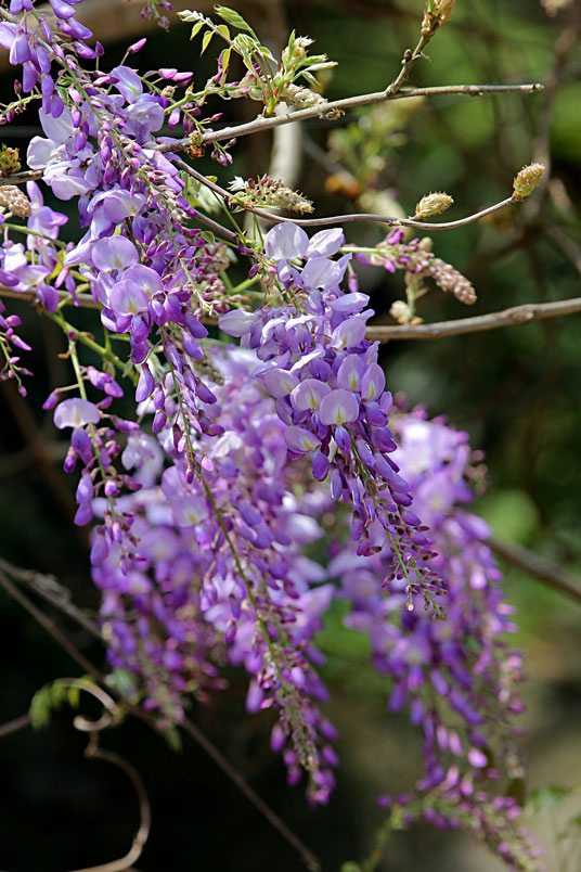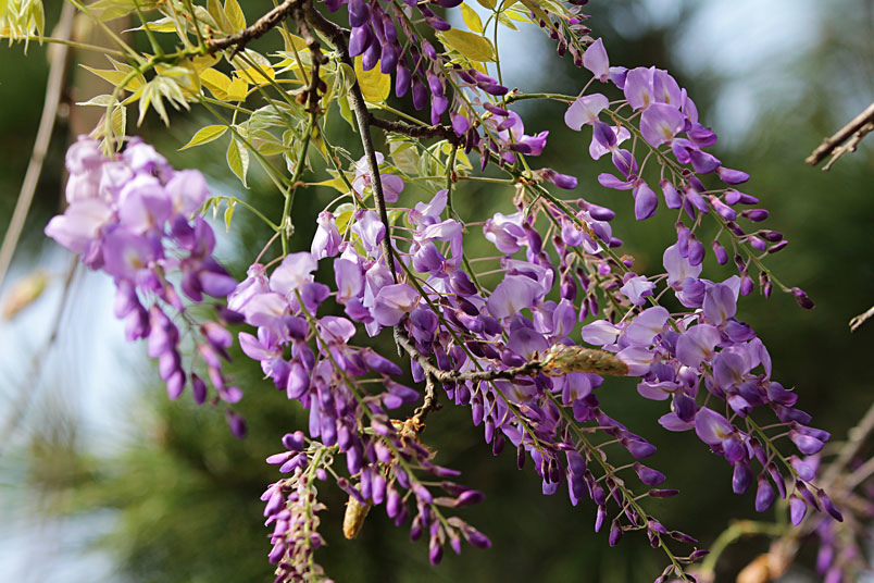 紫藤是一種落葉攀援、纏繞性的大藤本植物,花兒一串一串沿著