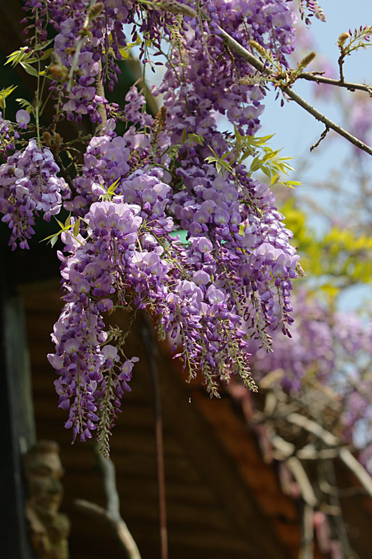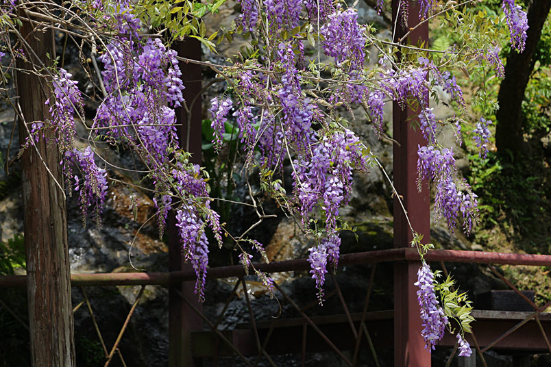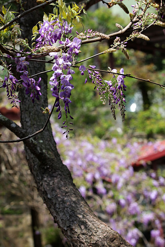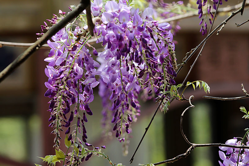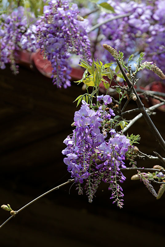 明前後紫藤花盛開,將整個木造空間渲染成紫色浪漫。