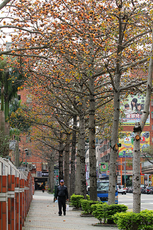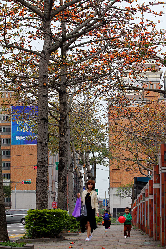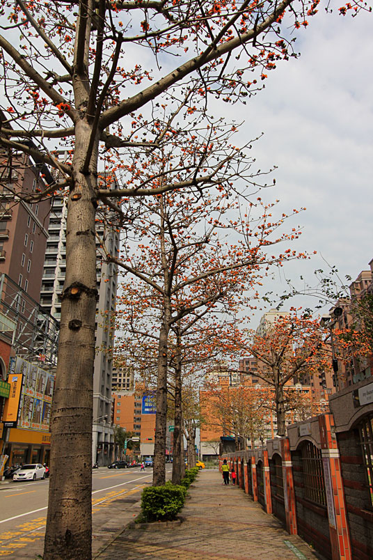 紅紅的花開滿了木棉道」這樣美麗的木棉樹群,是桃園蘆竹區光