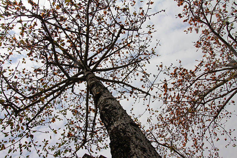 滿樹枯枝,加上蒼勁的樹幹,更具蕭瑟之美。木棉樹年復一年春