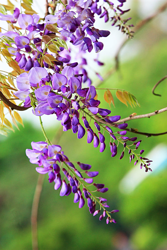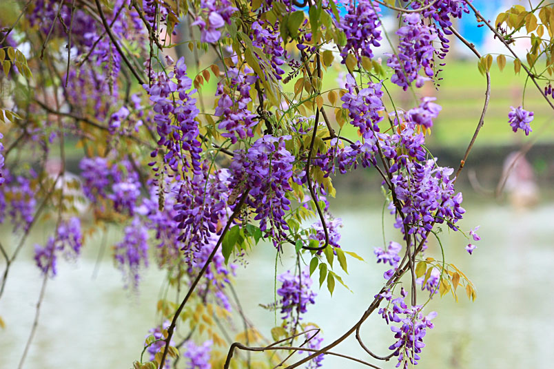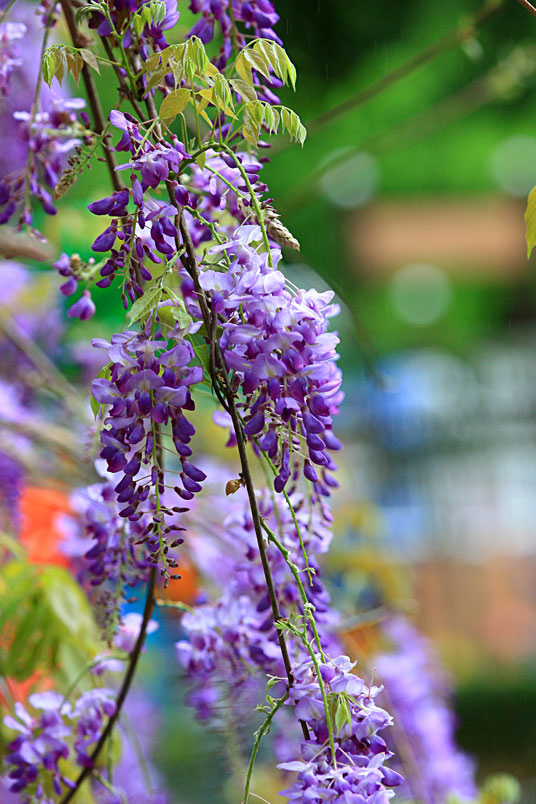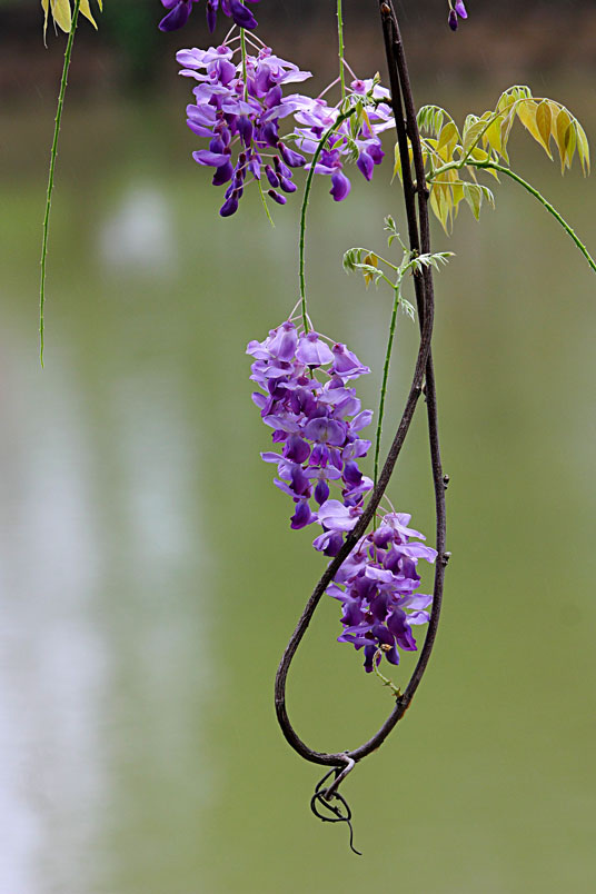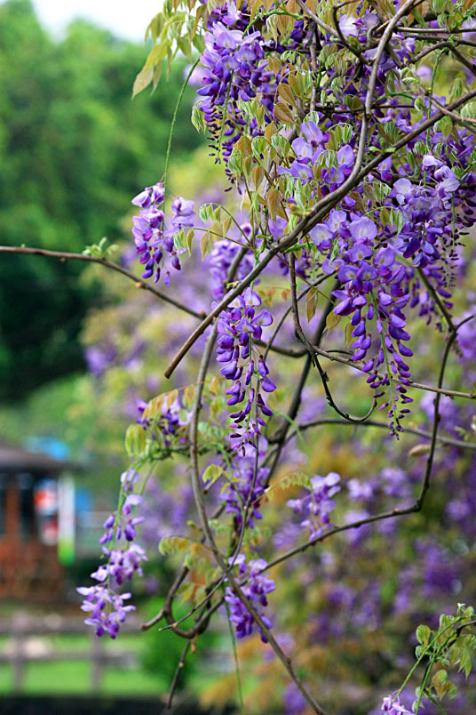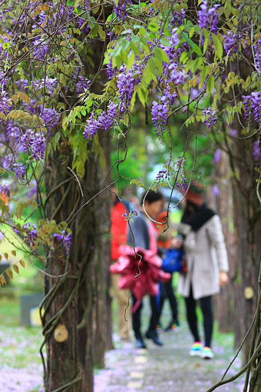 雖然天公不作美,雨絲不斷飄下,也不減紫藤的嬌美,雨中賞花