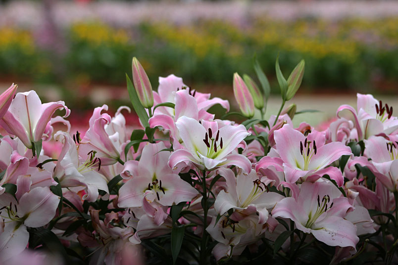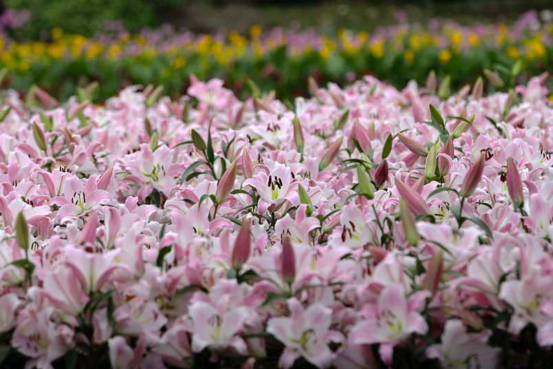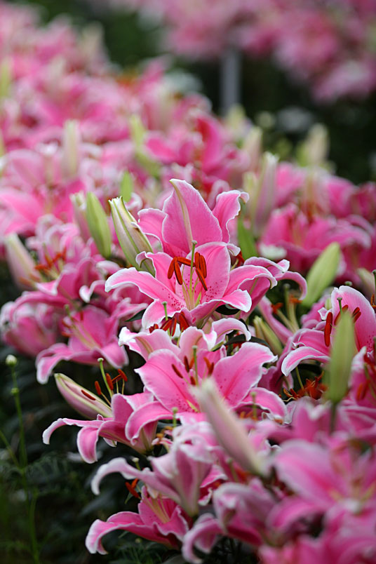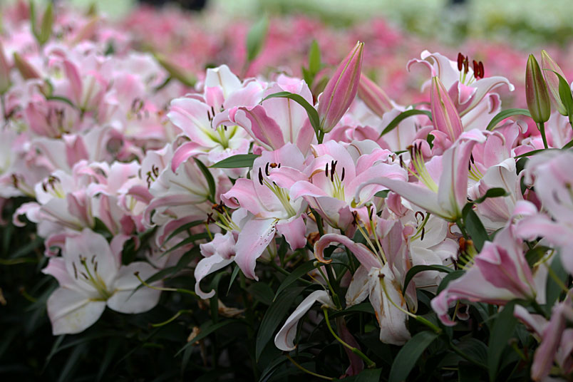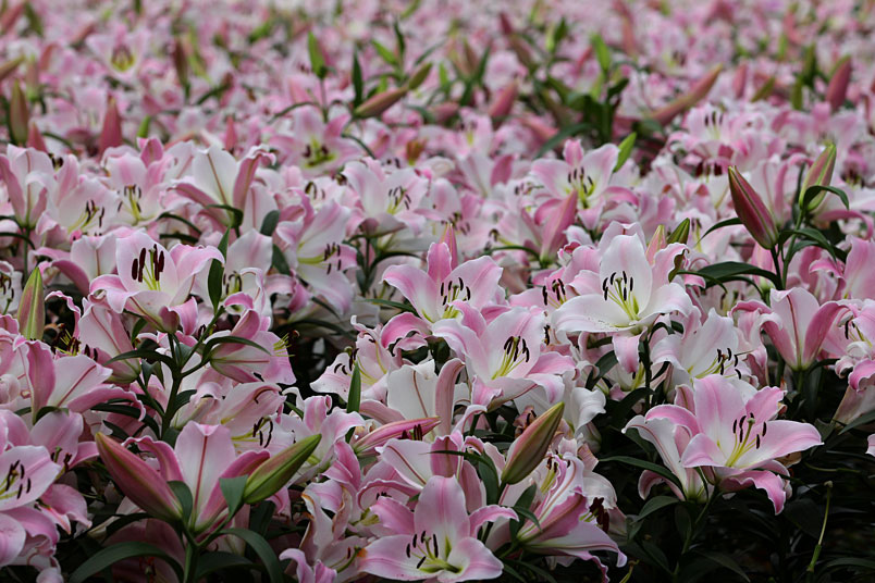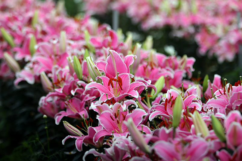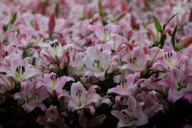 幕時尚未開放的香水百合,這回全部卯起來開,來勢洶洶,彷