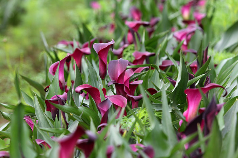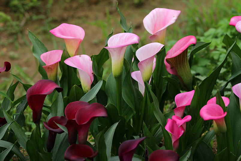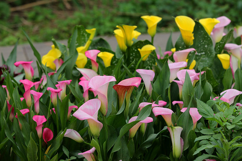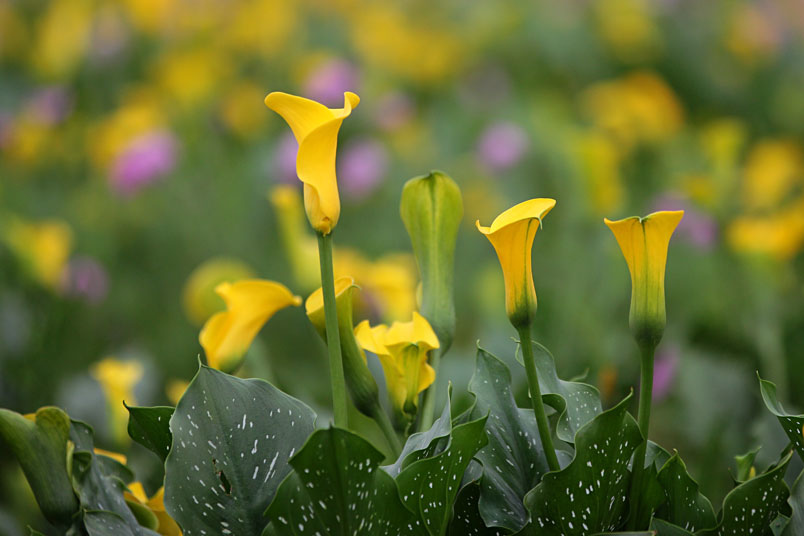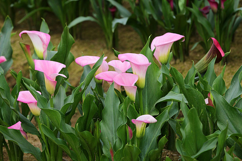 仍然含苞待放。近日天氣晴朗,花況正好,各色海芋陸續綻放