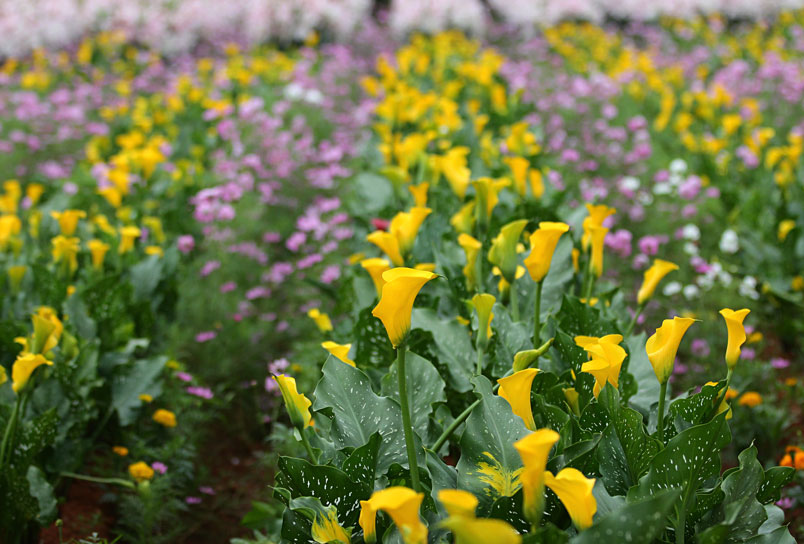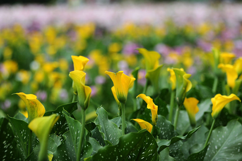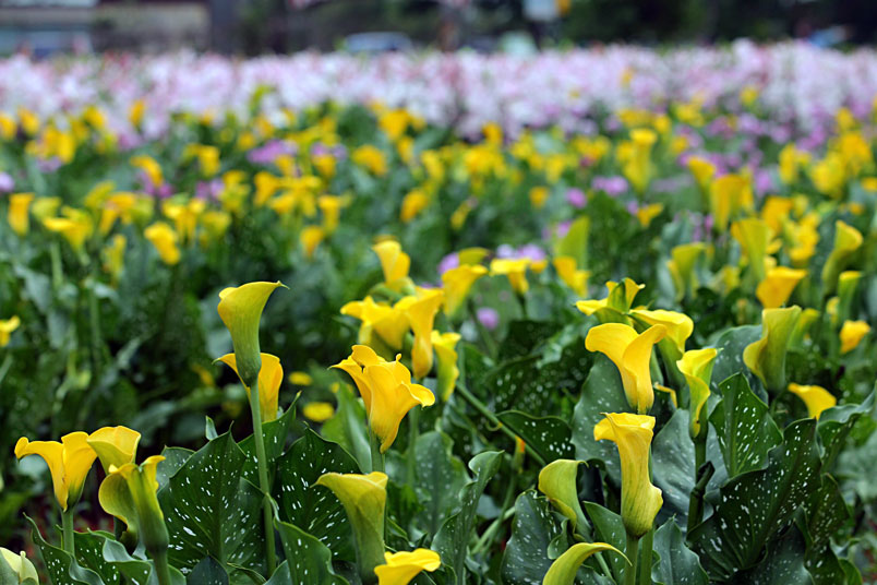 活動初期,四色海芋中只有黃色海芋盛開,其他花色海芋大多