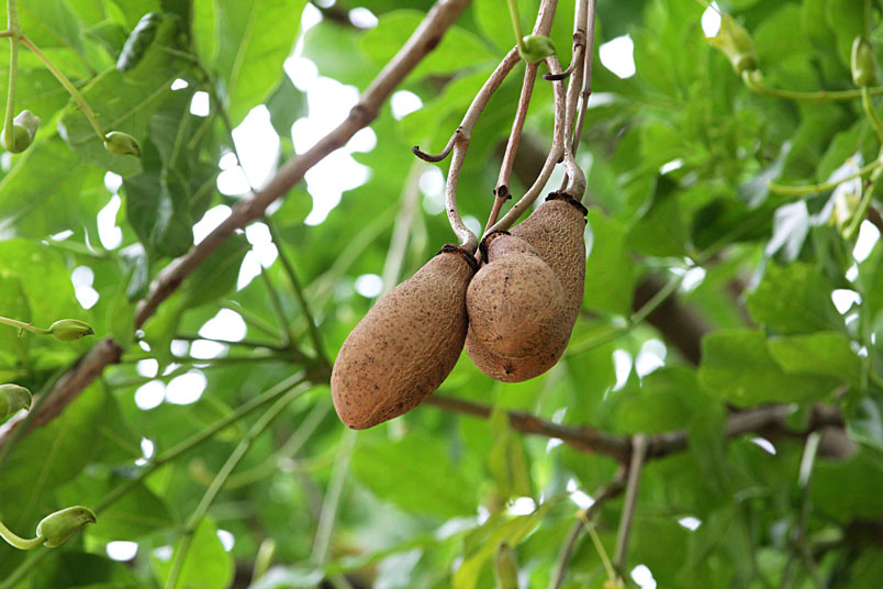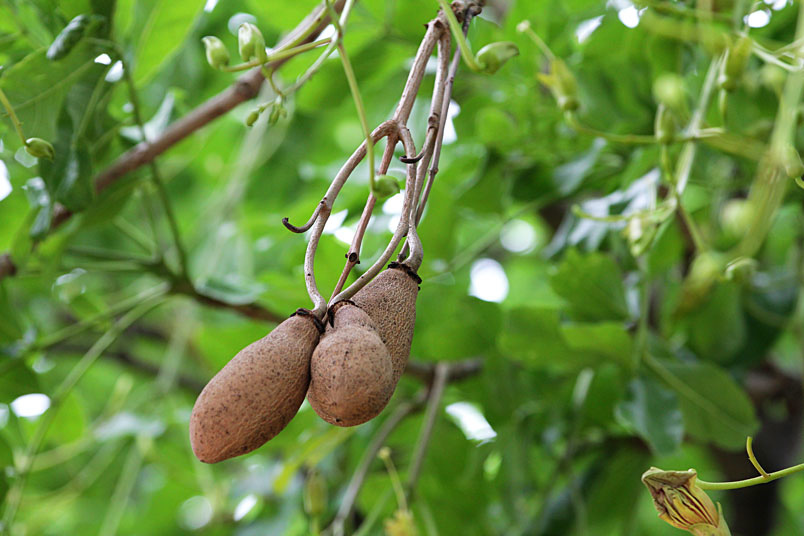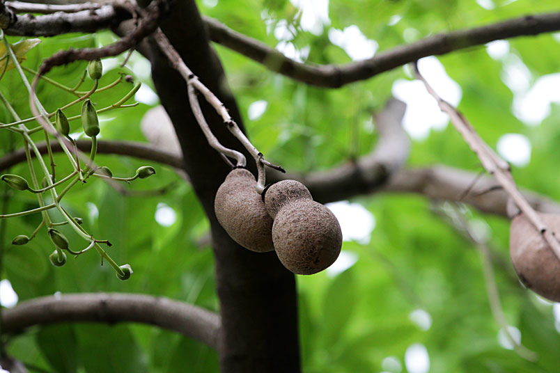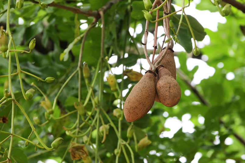 ,形似大臘腸,故名「臘腸樹」,每粒3至10公斤 重,有如意大