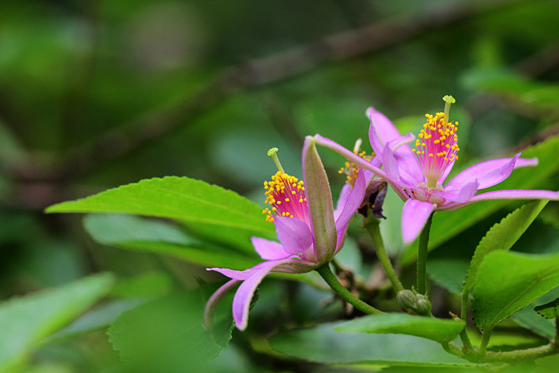 淡粉淡紫的花瓣,簇擁著金黃的花蕊,花朵小巧玲瓏精緻、典雅