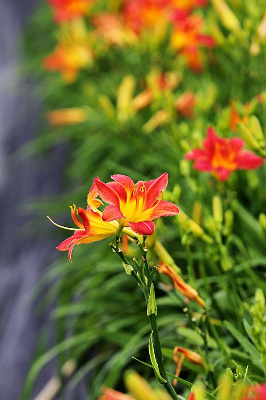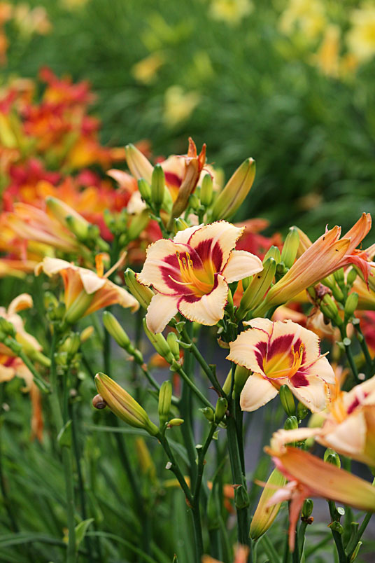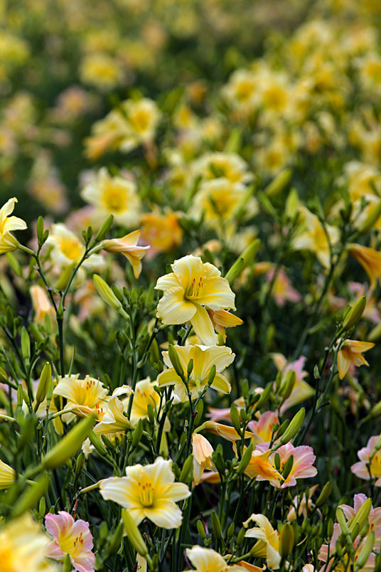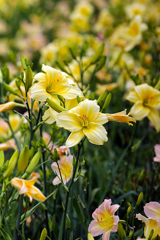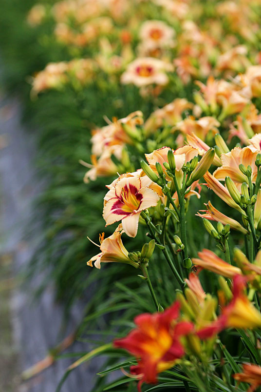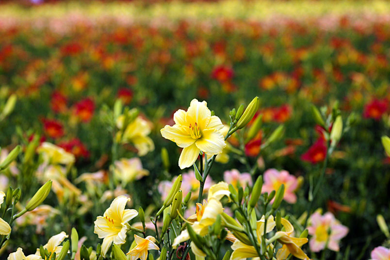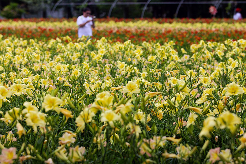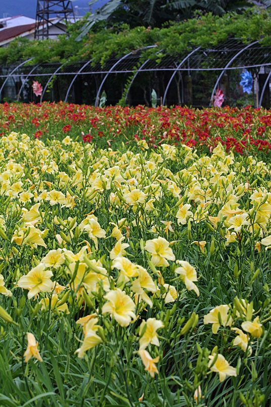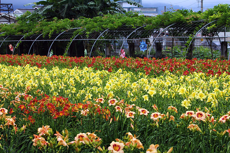 此處共有五種顏色的改良金針花,花型、花色不似常見品種,嘉德