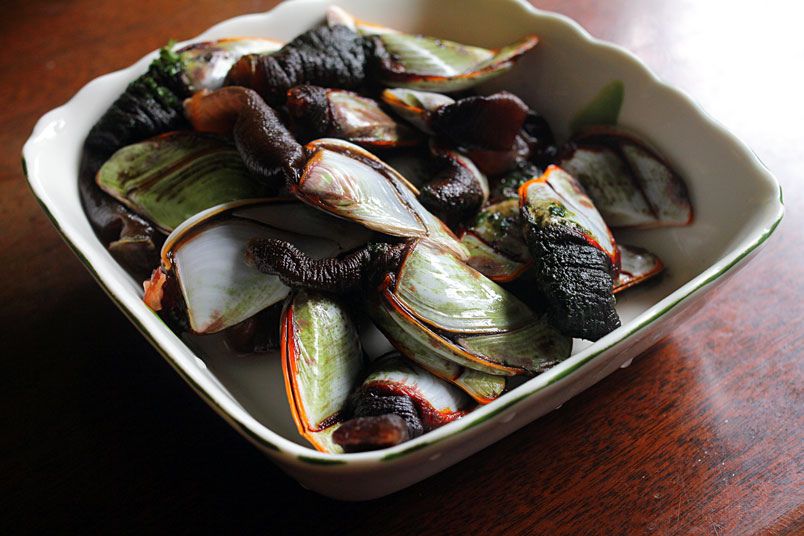 由於長相奇怪,鵝茗荷被稱為「來自地獄的海鮮」,食用時剝去外