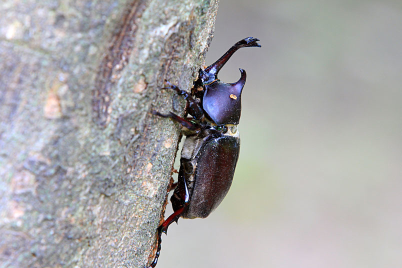 獨角仙非常喜歡吸食光蠟樹的樹液,它們先用堅硬的大顎刮樹