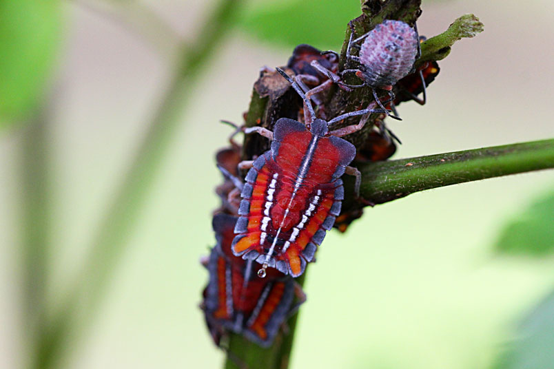 若蟲其齡期從一至五齡約60天,若蟲有群集取食現象,受干擾時