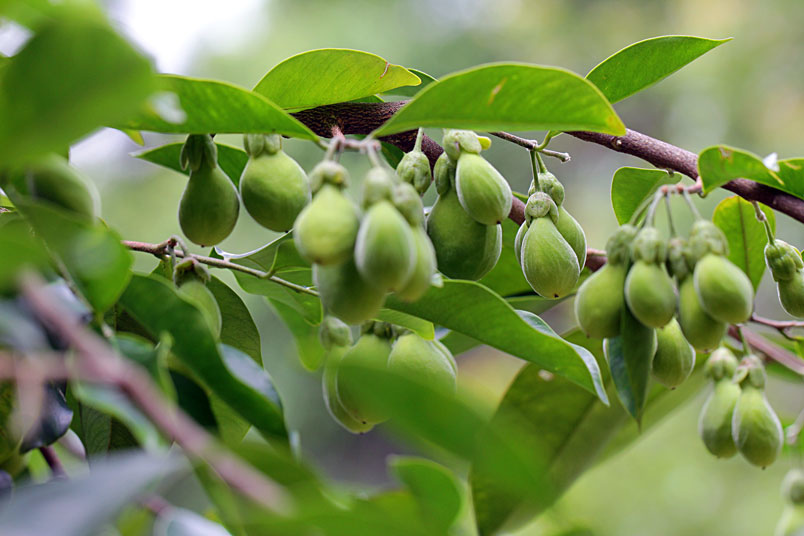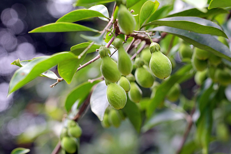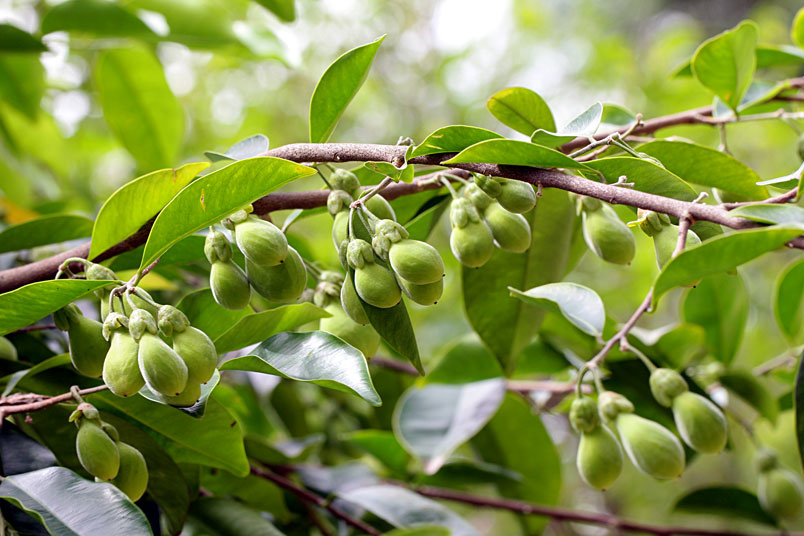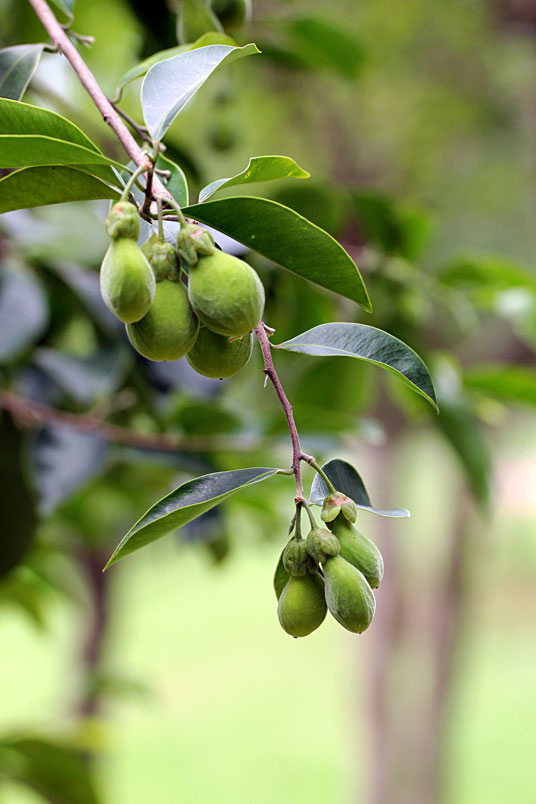 常綠喬木,株高可達10米。樹榦灰色,小枝被軟毛。葉卵形,長
