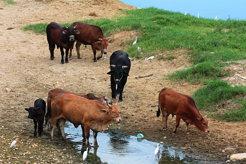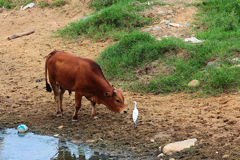 牛隻悠閒吃草喝水,這個畫面是我在西濱公路旁拍攝的,就在林