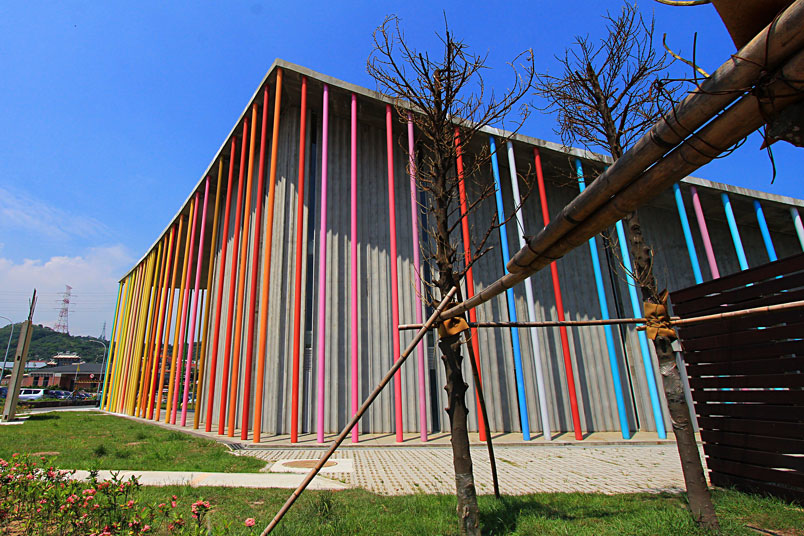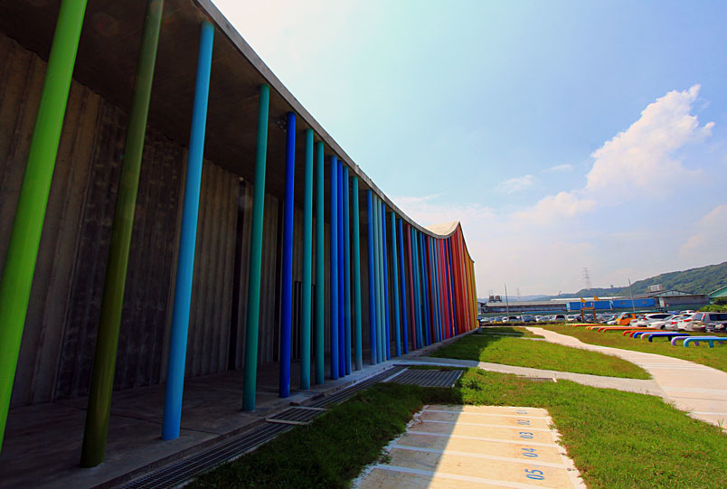 因為外部的七彩樑柱,整體顯得繽紛,具有蓬勃生氣。完工落成