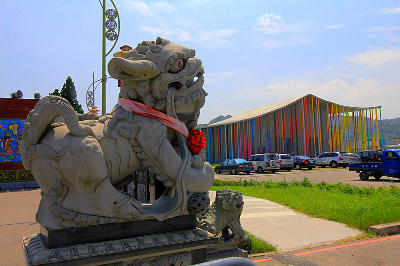 築輪廓,曲面屋頂則呼應宮廟燕尾,宛如洪福宮的延伸,更善用