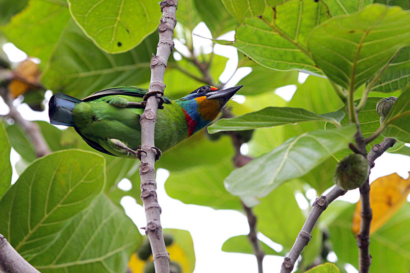 五色鳥食性主要以果實為主,亦食用昆蟲;飛行笨拙,不好動,大