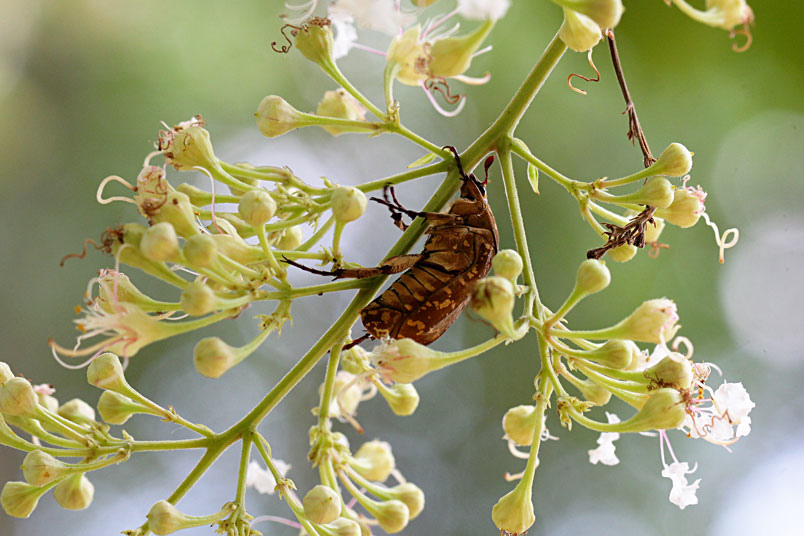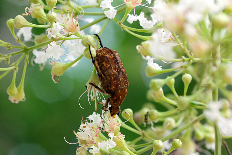 銅點花金龜,體長19-23mm,體色褐色或黃褐色,體背布滿米白色的