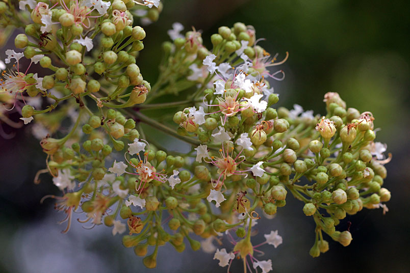 為「猴溜」。6~8月開花,花冠白色,花數甚多而密生枝端花為圓錐