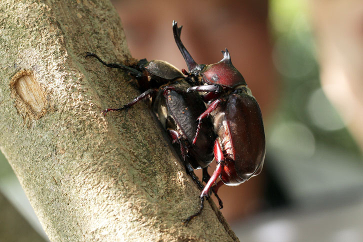 爭奪食物,地盤和吸引異性雌蟲無犄角,體背也較無光澤。